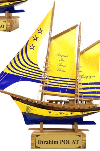 Kişiye Özel İsimli Gemi Maketi - SARI LACİVERT - Doğal Ahşap El Yapımı