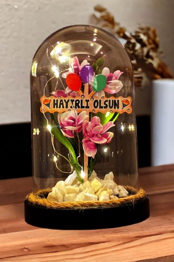 Hayırlı Olsun Temalı Led Işıklı Fanus - Zambak Çiçekli