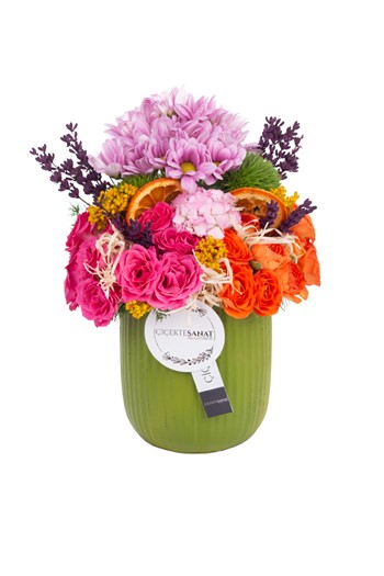 Happy Sunflower Floral Designers ekibimizin harikalar yarattığı Ayçiçeği başta olmak üzere çok neşeli ve sade bir düzenlemedir.