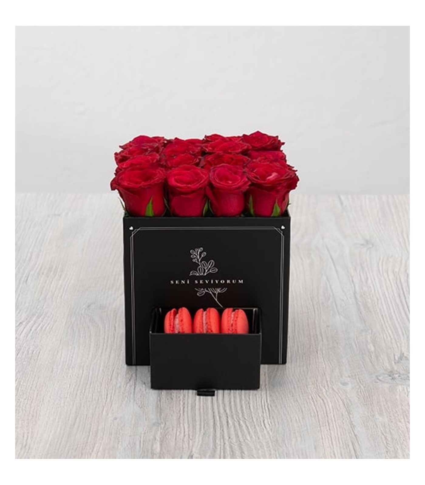 101 Dilde Seni Seviyorum Siyah Kutuda Kırmızı Güller 16cm*16cm*16cm