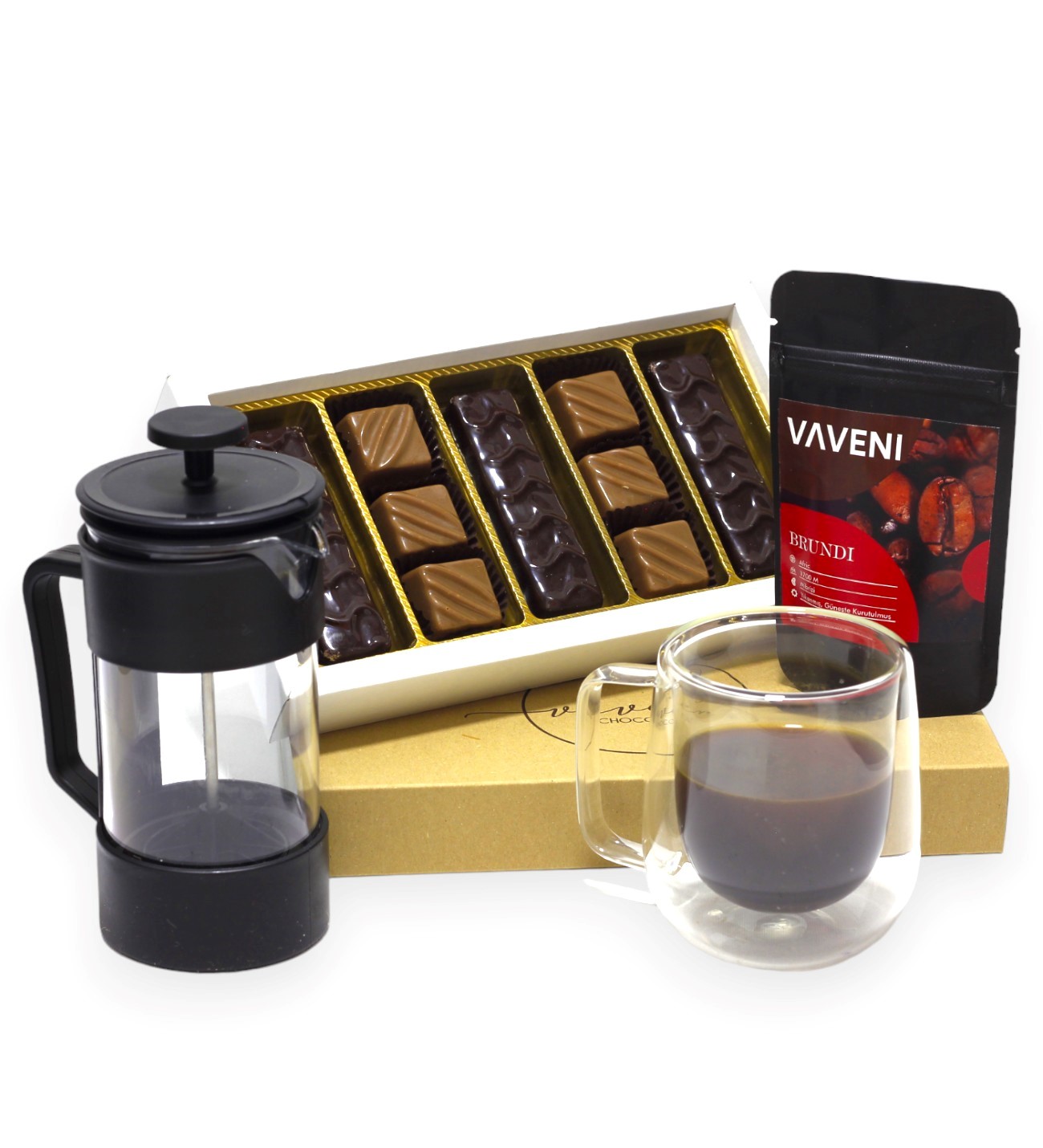 Hediyelik Burundi Kahve Cidarlı Bardak French Press Ve Kahve Yanı Çikolata