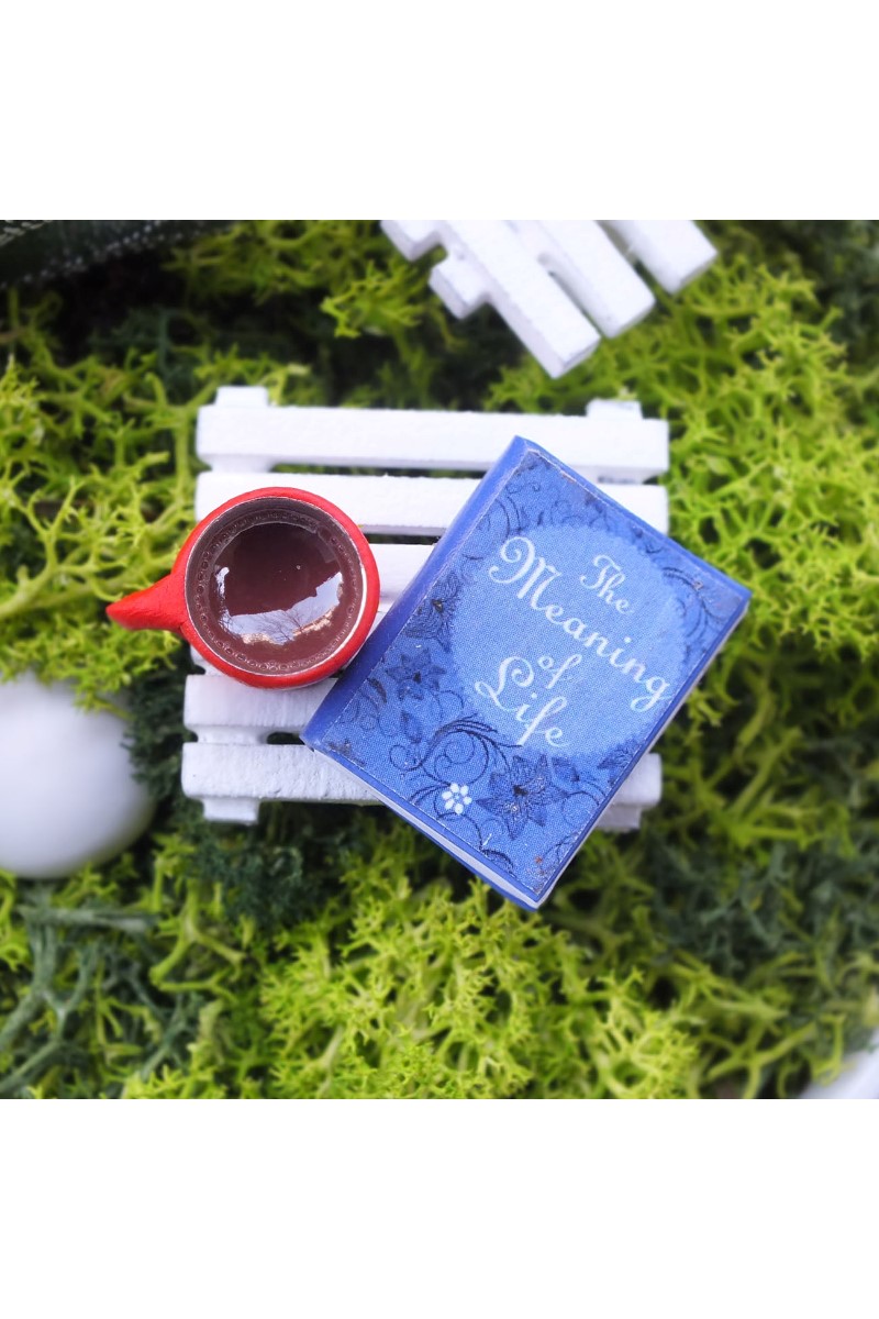 Bahçede el yapımı ahşap sandalye, sehpa ve üzerinde minyatür kitap ve kahve fincanı yer alır. Zeminde minyatür mantar ve çakıl taşları bulmaktadır.
