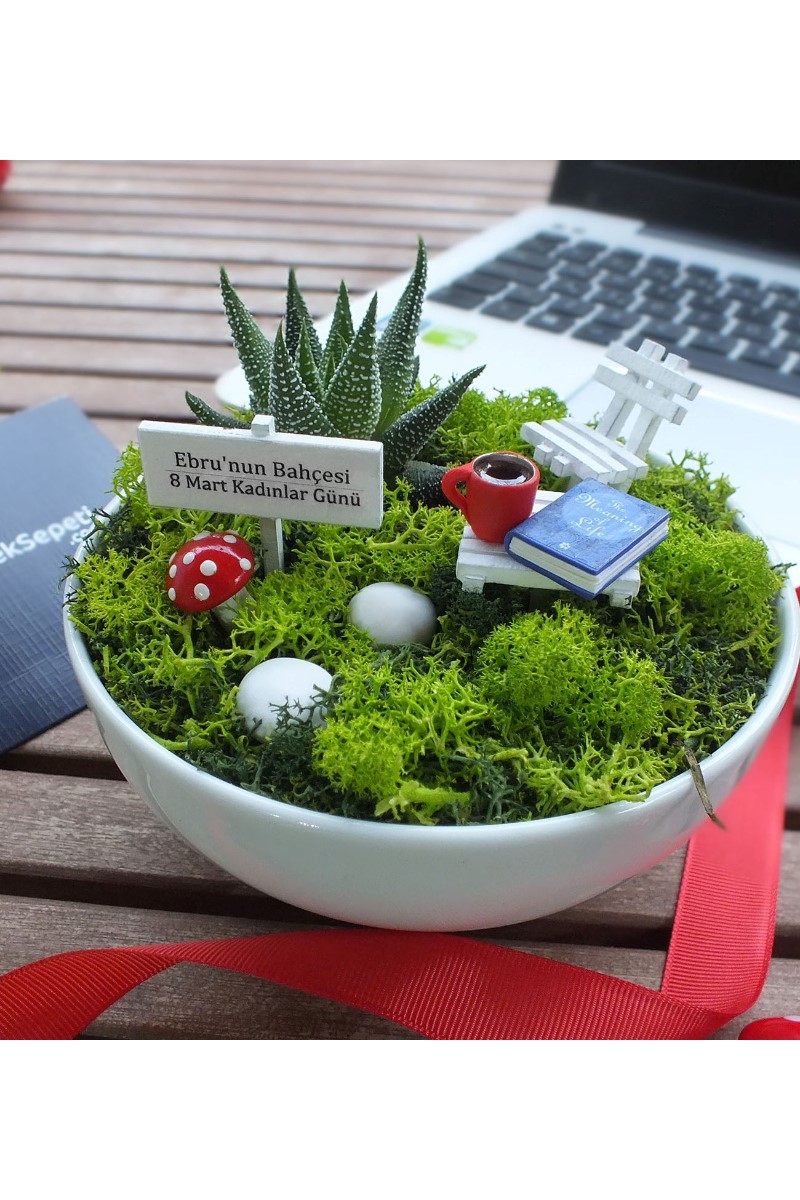 Bu orijinal tasarım yıllarca unutulmayacak eşsiz bir hediye arayanlar için canlı bitkiler ve ahşap mobilyalarla hazırlanmıştır. El emeği ile üretilen şeyler her zaman özeldir. Minyatür bahçeniz; anneniz, yeni anne olmuş arkadaşınız veya eşiniz için özenle seçilen bitkiler ve tek tek elde hazırlanan aksesuarlarla tamamlanır.