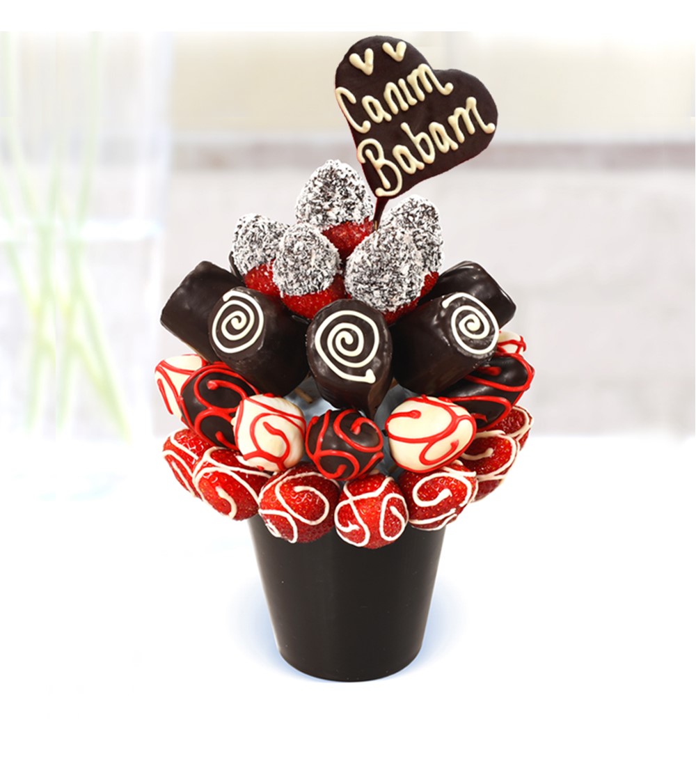 Sepet çapı 12 cm, yüksekliği 10 cm, sap yüksekliği 35 cm’dir. Adetler meyvelerin boyutuna göre değişiklik gösterebilmektedir. Saksı rengi stok durumuna göre değişiklik gösterebilir.
