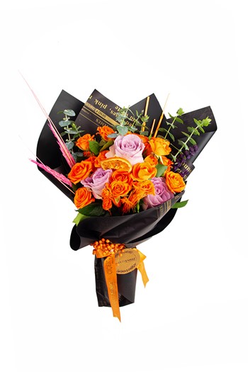 Pembe papatyalar ve 4 adet makaronla kombin edilmiştir.