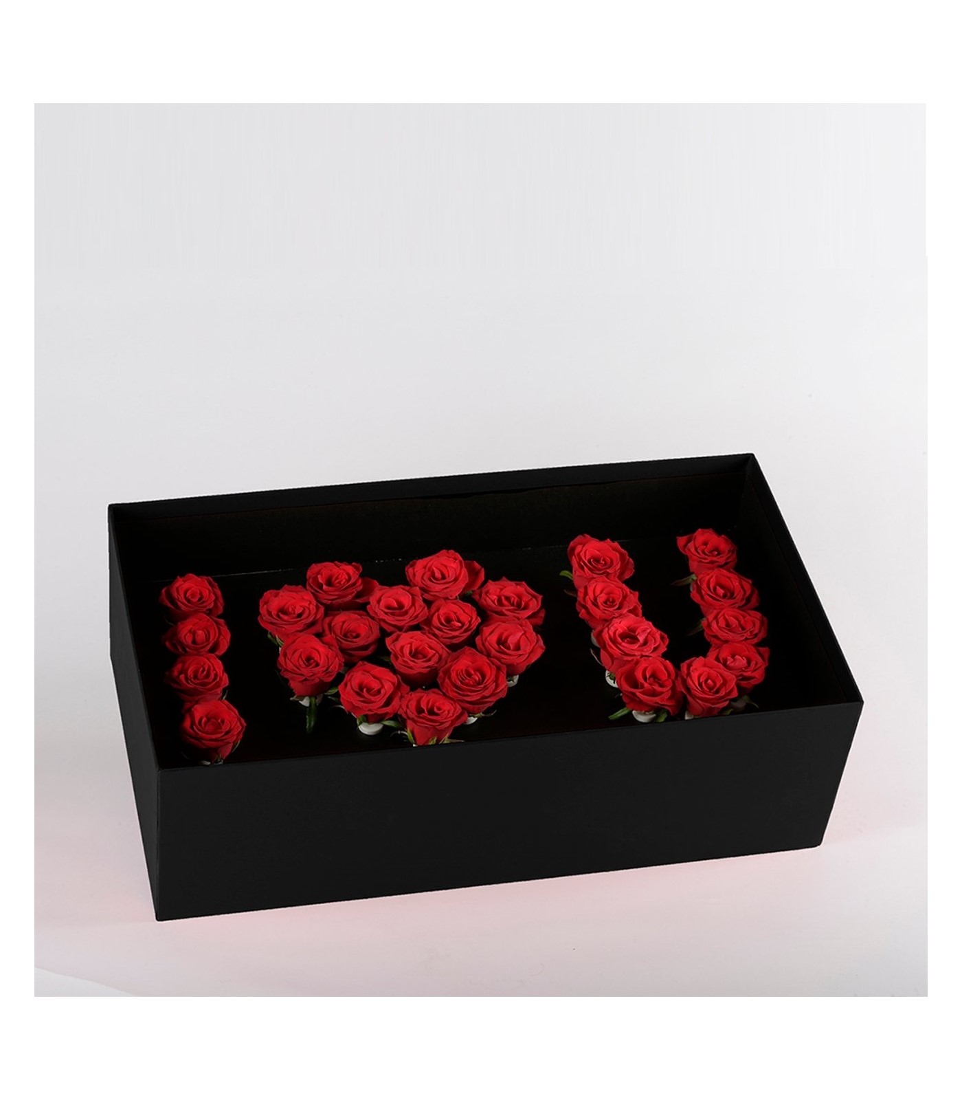 Büyük Dikdörtgen Siyah Kutuda Seni Seviyorum Kırmızı Güller