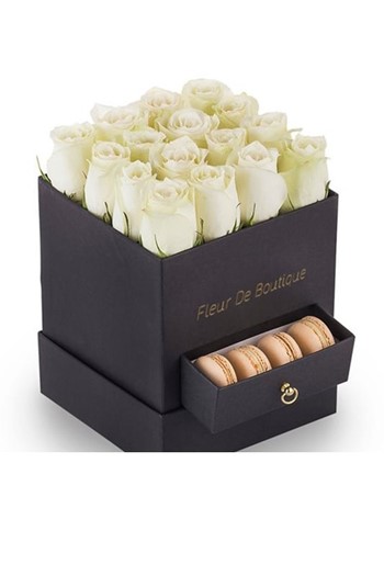 Siyah Kutuda Kırmızı Güller ve Makaron Kutu Ölçüsü : 16cm*16cm*16cm