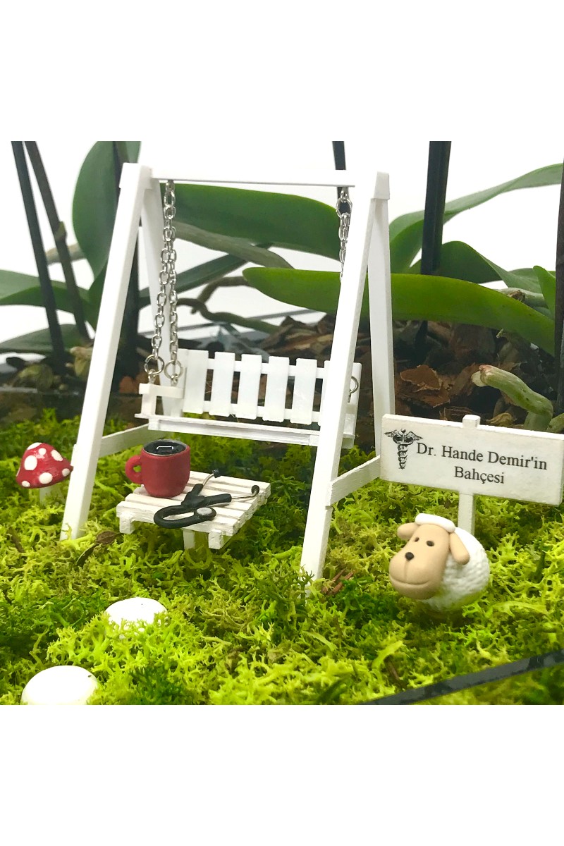 Aksesuarlar : El yapımı ahşap minyatür salıncak ve sehpa, sehpa üzerinde el yapımı minyatür kahve kupası ve el yapımı minyatür stetoskop, el yapımı minyatür kuzu figürü, el yapımı ahşap bahçe çitleri, minyatür kırmızı mantar, minyatür taş figürleri ve isme özel hazırlanan ahşap bahçe tabelası (Tüm aksesuarlar fiyata dahildir)