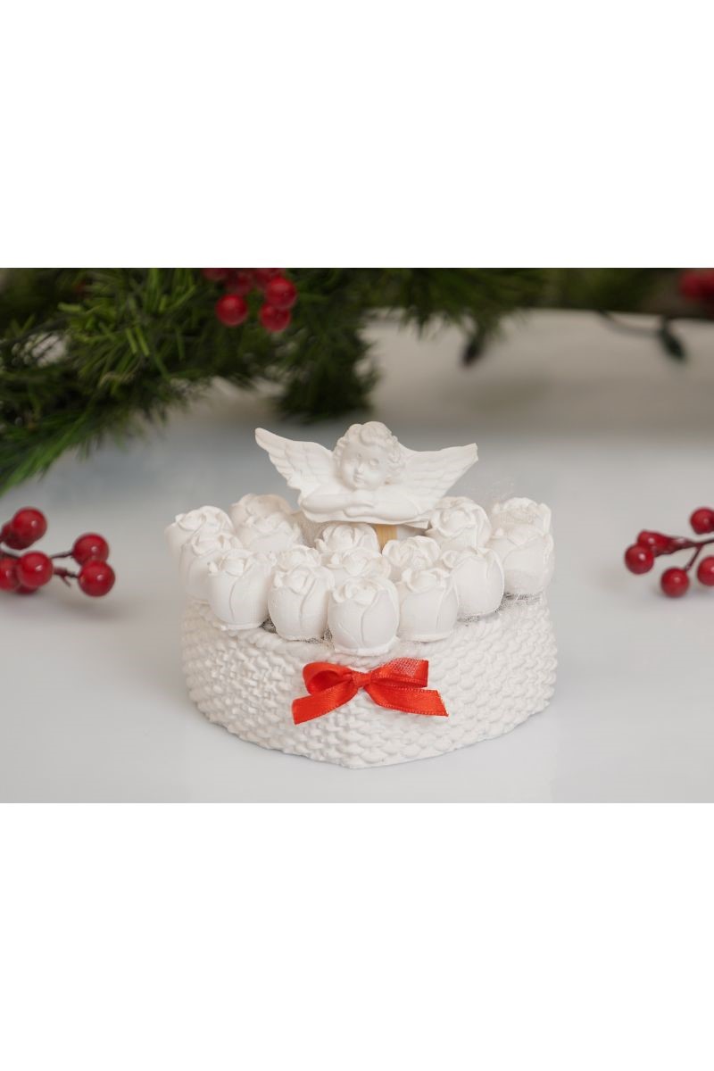 Döküm kalpli saksıda beyaz düş aşk gülleri kokulu taş çiçek aranjmanı