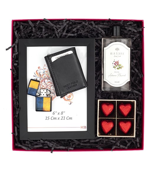 Foto Çerçeve & Taraftar Çakmak & Cüzdan & Kolonya ve Kalp Çikolatalı Hediye Seti