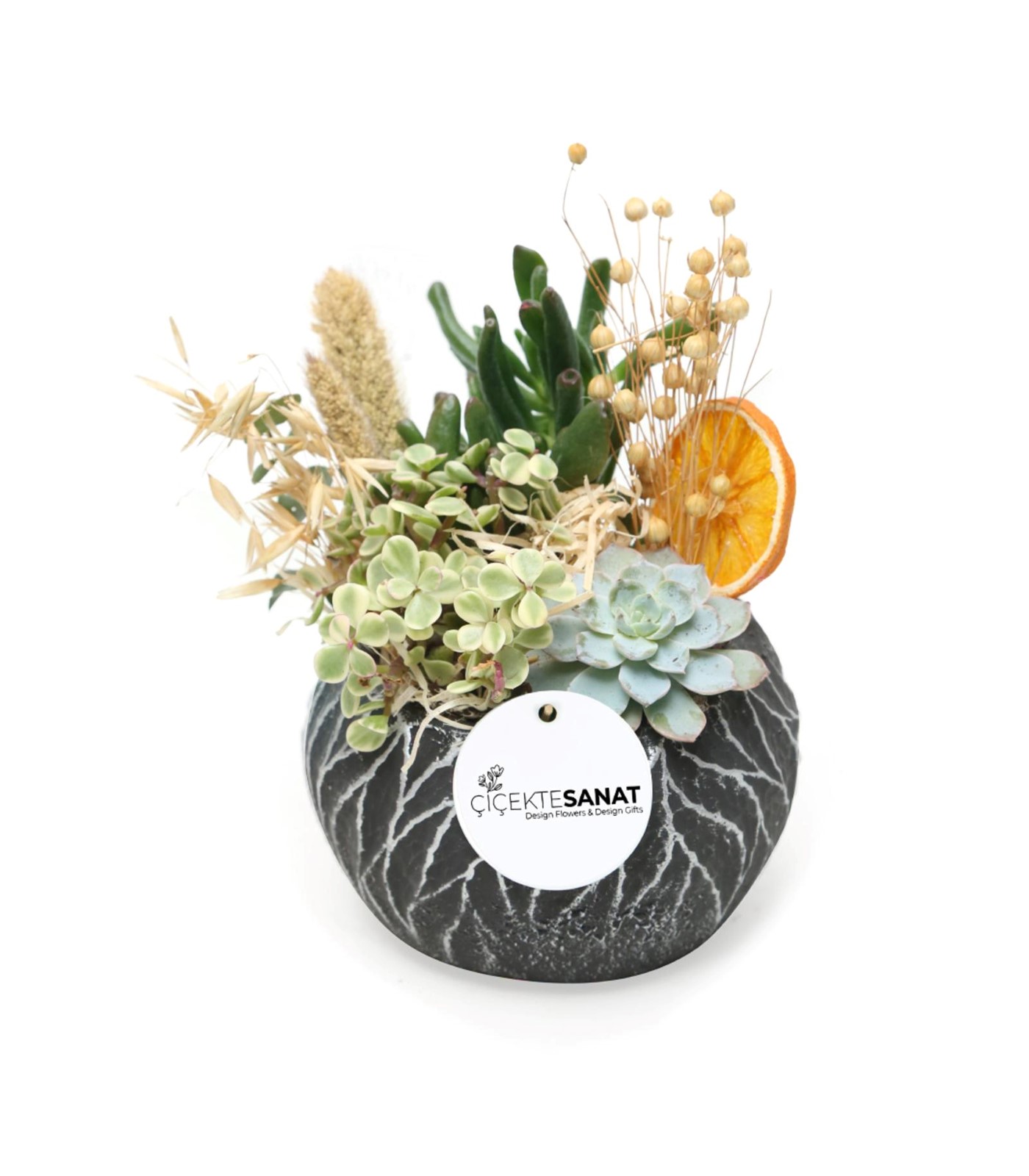Floral Designers ekibimizin ahenkle hazırladığı içerisine Areka, Sukulentler ve Portakallar ile zevk veren keyifli botanik bahçe havasıyla oluşturduğu bir üründür.