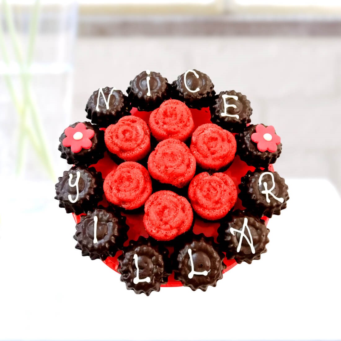 Ürünümüzde yaklaşık 12 adet çikolatalı kurabiye ve 7 adet gül kek bulunmaktadır. Strafor çapı 18 cm dir.