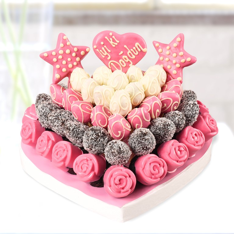 Ürünümüzde yaklaşık olarak, 16 adet frambuaz çikolata kaplı kek gül, 19 adet bitter çikolata ve hindistan cevizi kaplı çilek, 24 adet çikolata kaplı işlemeli çilek, 3 adet kurabiye bulunmaktadır.