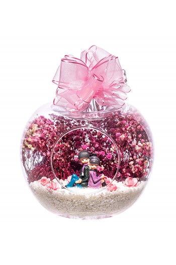 Teraryum fanus bölümü abs’den yapılmış modelimizde;  renkli balonlar, kurutulmuş bitki ve şoklanmış yosunla beraber,kum,mantar,kurdele kullanılarak elde hazırlanmıştır. Arkadaş-genç kız temalı biblo,1 adet iyiki doğdun panosu kullanılmıştır.