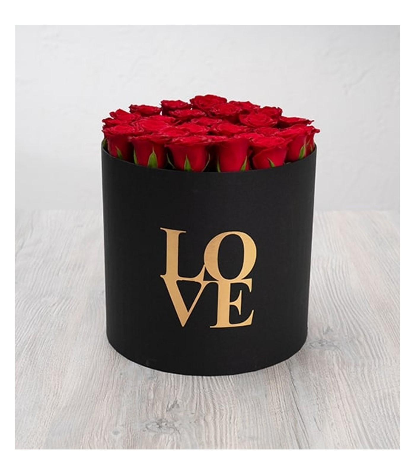Jumbo Boy Siyah Silindir Kutuda Kırmızı Güller
