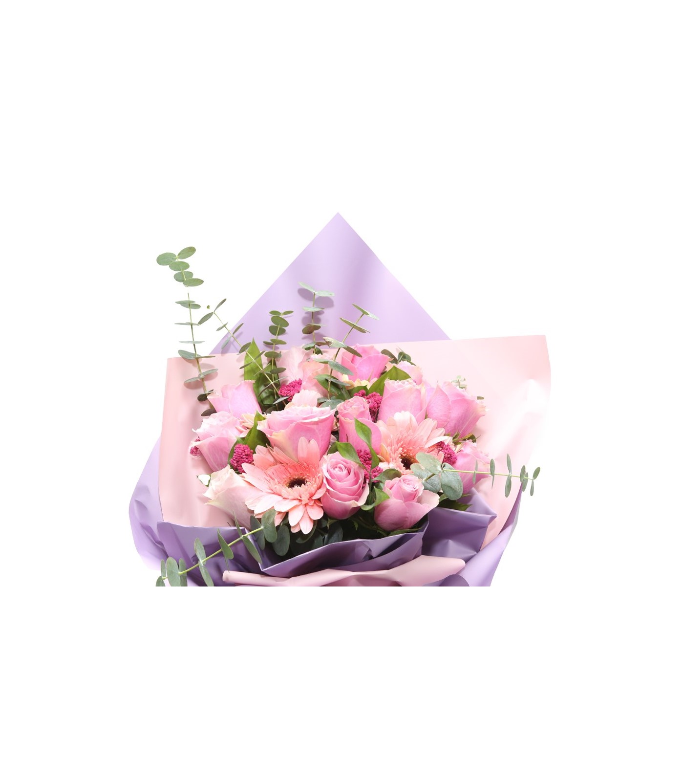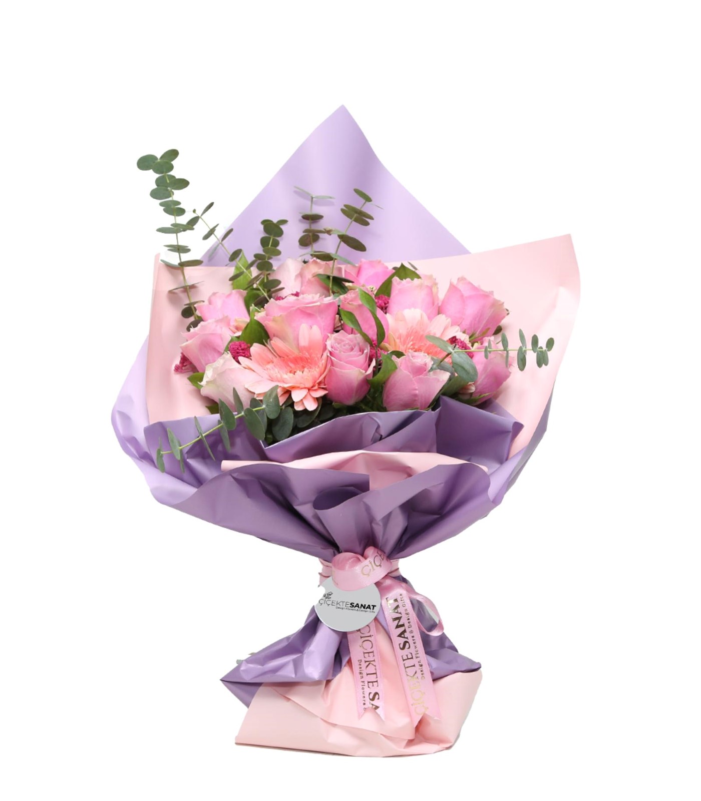Just Pink Güller, Floral Designers ekibimizin pembe güller,okaliptuslar,gerberalar ve dallar ile harika tasarlanmıştır