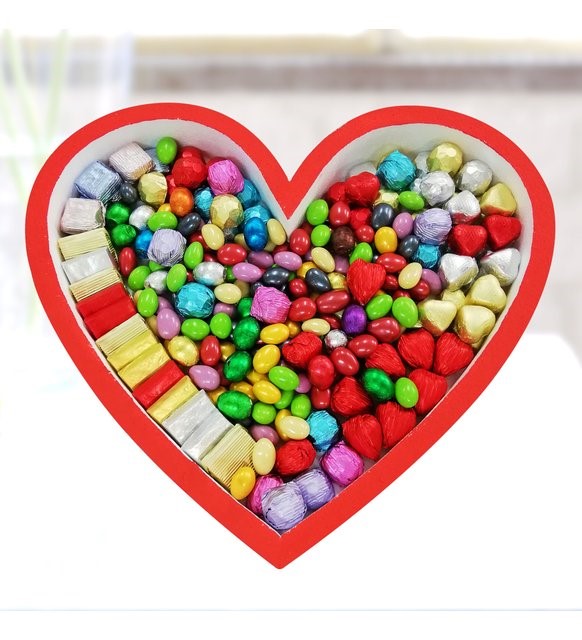 Ürünümüz Kalp şeklinde kaliteli simli strafordan oluşup, kutu içerisinde yaklaşık 2200 gr spesyel çikolata ve badem draje bulunmaktadır.. Vip Üründür. Kutu çapı 46 cm, yüksekliği 9 cm'dir..