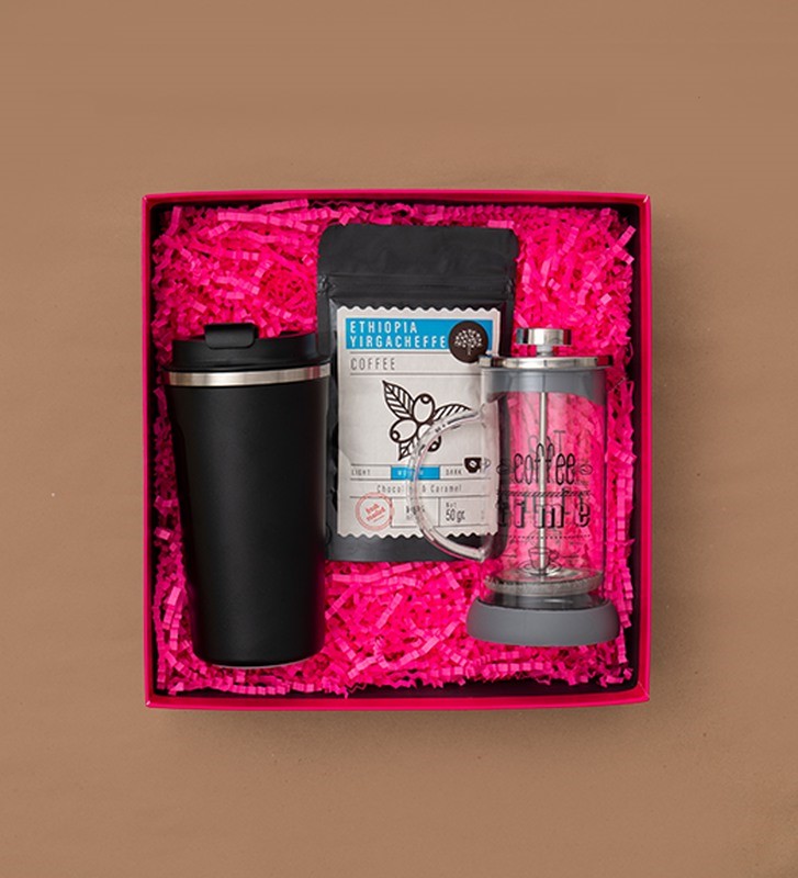 Hediye Kutusu İçeriği 50 gr Ethiopia Kahve - Bardak Termos - Frenchpres