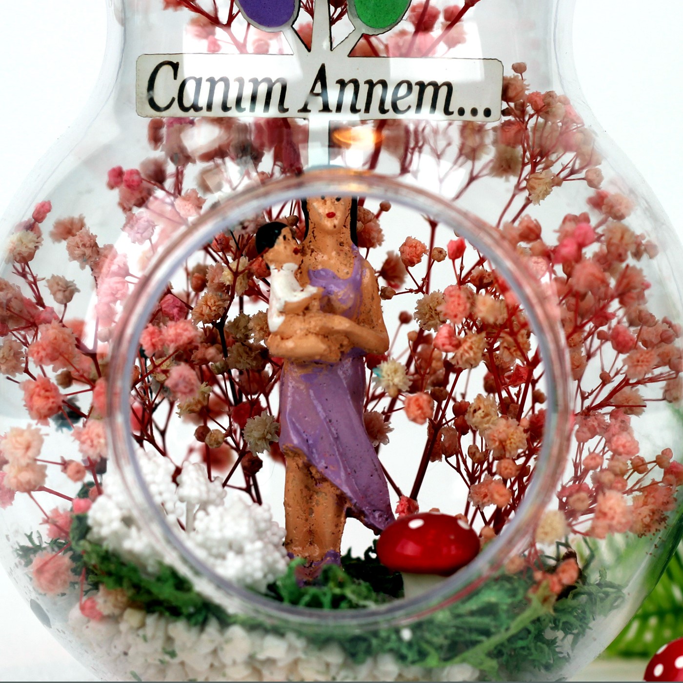 Anneye hediye ,anneler günü hediyesi, anneye hediye,teraryum,annenize teraryum olarak armağan edebileceğiniz göz alıcı mutluluk dolu unutulmaz bir hediye...</p> <p>Ürün özellikleri:<br> Teraryum fanus bölümü abs’den yapılmış modelimizde : kurutulmuş bitki ve şoklanmış yosunla beraber,taş,kozalak,kuru ağaç kabuğu kullanılarak elde hazırlanmıştıR. Aile biblosu, mantar,gelincik figürleri ve sap kısmında doğal rafya kullanılmıştıR.</p> <p>Her biri kendine özgü bir tasarım olup, son derece temiz ve titiz çalışılmaktadır.</p> <p>Ürünlerimizde doğal malzemeler kullanıldığı için renkler stok durumuna göre -çok nadir- değişiklik gösterebilir.</p> <p>Ürün Ölçüleri:En:13cm - Boy:13cm - Yükseklik:22cm'dir