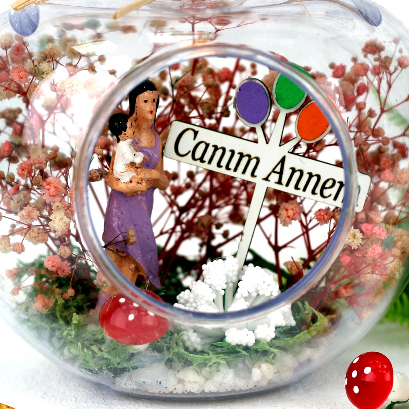 Anneye hediye ,anneler günü hediyesi, anneye hediye,teraryum,annenize teraryum olarak armağan edebileceğiniz göz alıcı mutluluk dolu unutulmaz bir hediye...</p> <p>Ürün özellikleri:<br> Teraryum fanus bölümü abs’den yapılmış modelimizde :kurutulmuş bitki ve şoklanmış yosunla beraber,taş,kozalak,kuru ağaç kabuğu kullanılarak elde hazırlanmıştıır. Aile biblosu, mantar,gelincik figürleri ve sap kısmında doğal rafya kullanılmıştır.</p> <p>Her biri kendine özgü bir tasarım olup, son derece temiz ve titiz çalışılmaktadır.</p> <p>Ürünlerimizde doğal malzemeler kullanıldığı için renkler stok durumuna göre -çok nadir- değişiklik gösterebilir.</p> <p>Ürün Ölçüleri:En:13cm - Boy:13cm - Yükseklik:22cm'dir.İSTEDİĞİNİZ FOTĞRAF İLE ÜRÜNÜ KİŞİSELLEŞTİREBİLİRSİNİZ.
