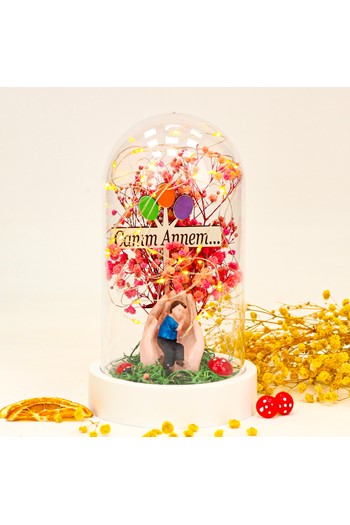 Kişiye Özel Fotoğraflı ve İsimli Tasarım Fanus - Led Işıklı