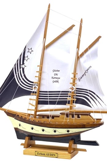 Kişiye Özel İsimli Gemi Maketi - SARI LACİVERT - Doğal Ahşap El Yapımı