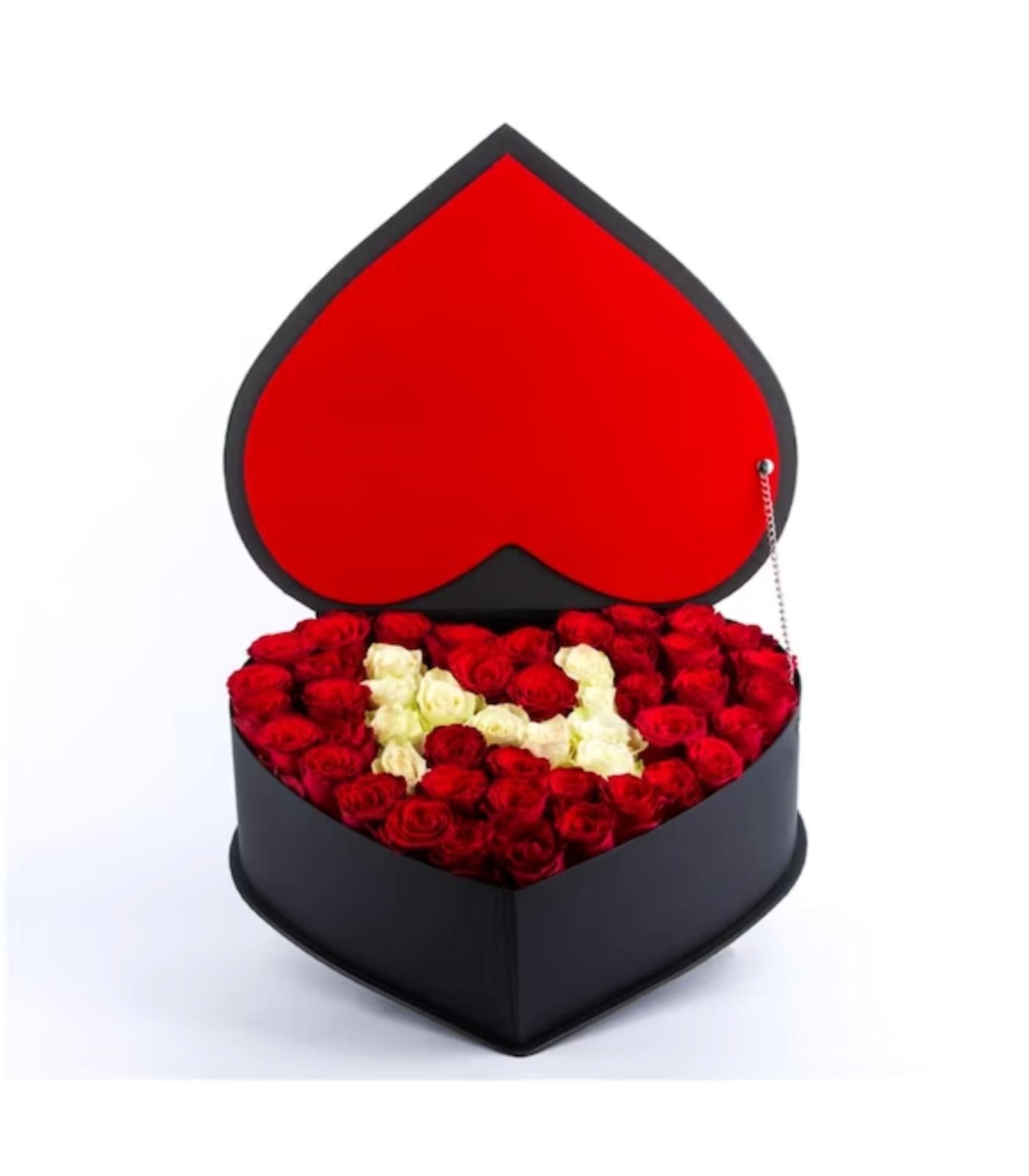 Kişiye Özel Kalp Kutuda Kırmızı Güller