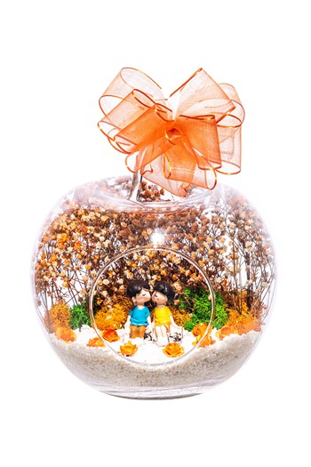 Kişiye Özel Tasarım Sarılan Çift Temalı Led Işıklı Fanus