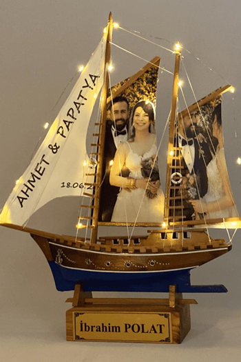 AHŞAP KAİDE (geminin alt kısmında) : Fırınlanmış ahşap malzemeden yapılmıştır. Bu alana dilerseniz isim soyisim, tarih, söz, firma adı vs yazabilirsiniz. Metal plakaya sıcak baskı yapılarak hazırlanmaktadır.