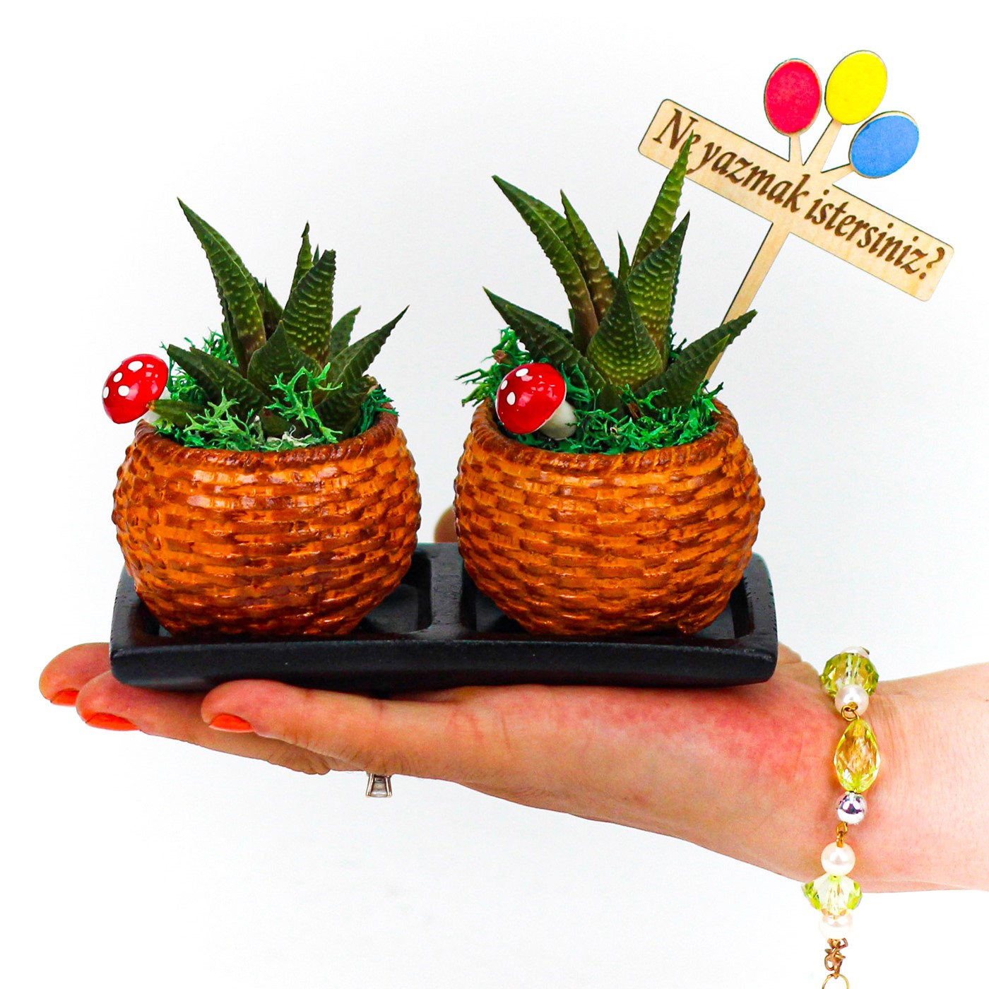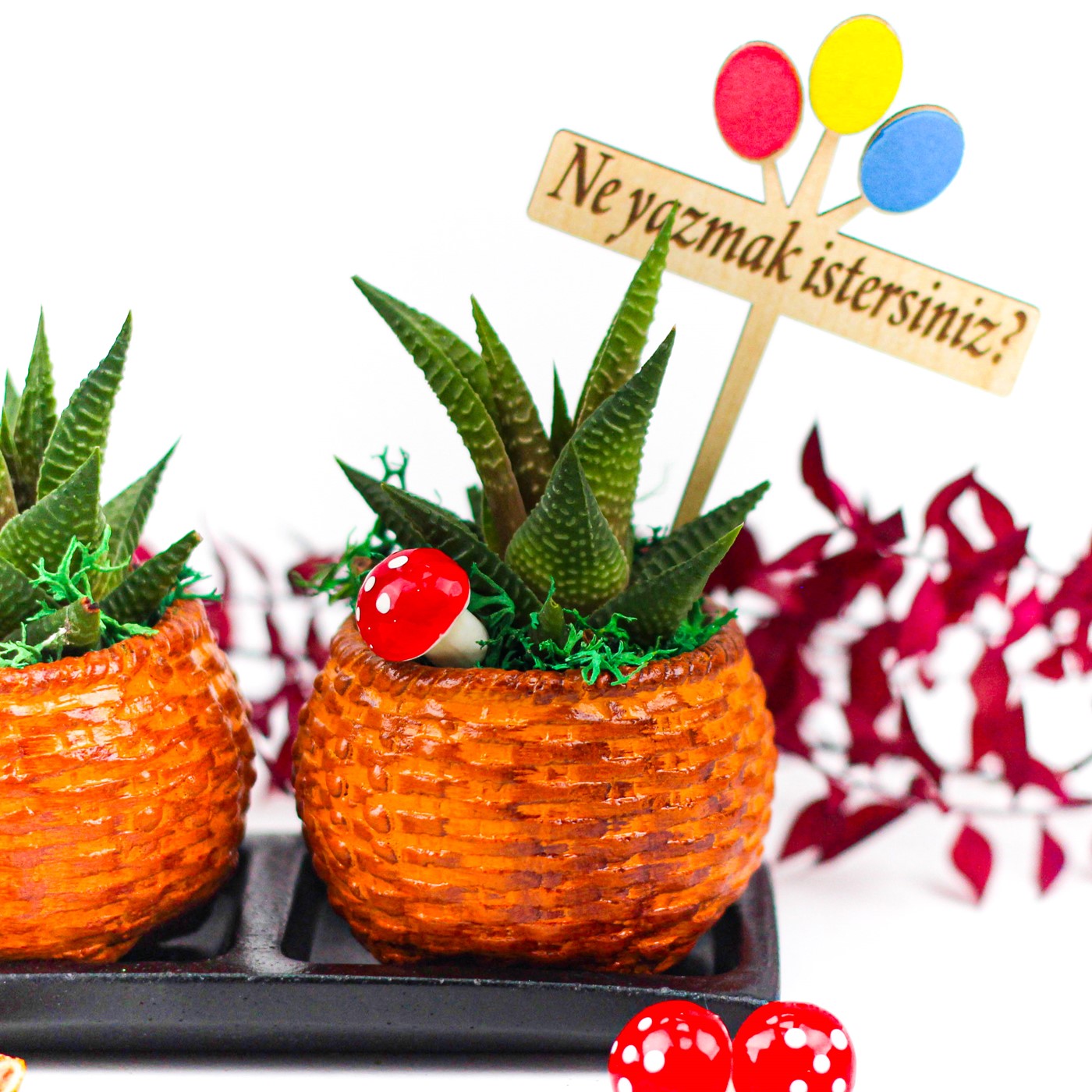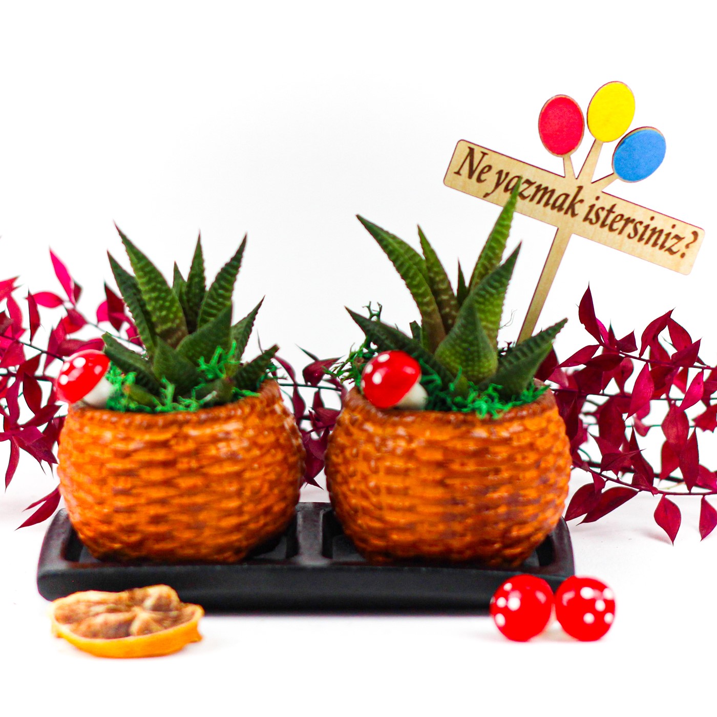 Arkadaşa hediye , doğum dönüm hediyesi, arkadaşa sukulent , howartia sukulent ,saksı, howartia ,canlı çiçek, sevdikleriniz en değer verdiklerinize alınabilecek en anlamlı hediyelerden sukulent sevdiğinizi mutlu edecek uzun yıllar sizinle beraber olabilecek bir hediye….</p> <p>Ürün özelikleri:</p> <p>2 adet saksı içerisine 2 adet howartia kullanılmıştır.</p> <p>.</p> <p>Bakım Talimatları: Nemli ortamlardan kaçınarak, doğrudan güneş ışığı ve parlak ışıktan uzak tutmanız yeterli olacaktır. Bakımını aydınlık bir ortamda sağlamalıdır. İçeriğindeki bitkiler gövde ve yapraklarına su depolayan bitkiler olduğu için sık sulanma ihtiyacı duymamaktadır. Mevsime uygun olarak 7-10 günde 1 yemek kaşığı miktarı su verilmesi yeterli olacaktır.</p> <p>Ürün Ölçüleri: En: 8cm Boy:15cm. Yükseklik:10cm.'dir.