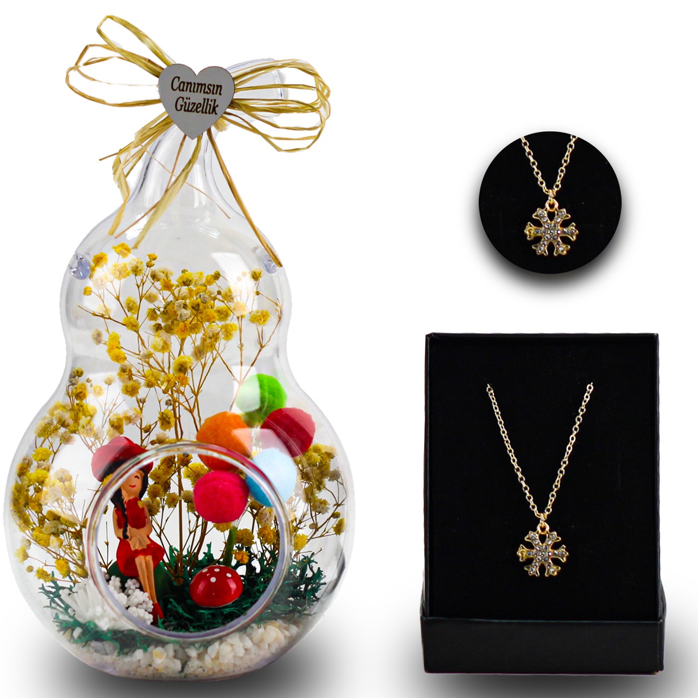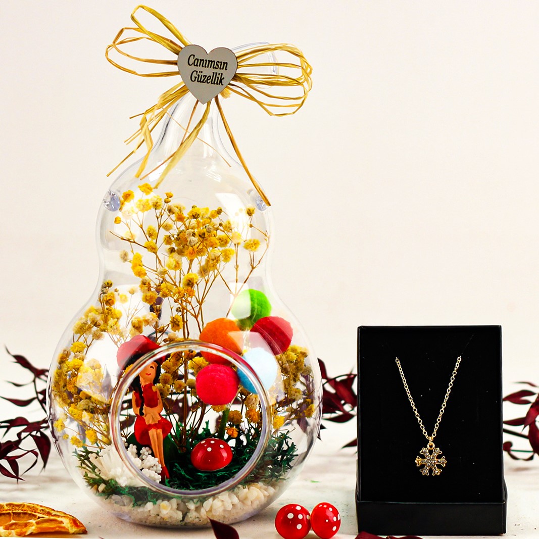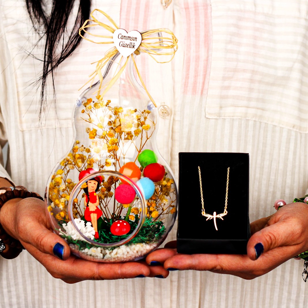 Arkadaşa hediye,kız arkadaşa hediye,teraryum,teraryum hediye,Dostluğunuz ve arkadaşlığınız için, küçük bir anı olarak,yüzde tebessüm yaratacak bir tasarımdır.Ürün Özellikleri:Teraryum fanus bölümü abs’den yapılmış modelimizde : Renkli balonları, şoklanmış cipso ve şoklanmış yosun,mantar kullanılarak elde hazırlanmıştır. kız biblosu, ve sap kısmında doğal rafya kullanılmıştır.Ürüne istediğiniz ismi ileterek ürünü kişiselleştirebilirsiniz.Her biri kendine özgü bir tasarım olup, son derece temiz ve titiz çalışılmaktadır.Ürünlerimizde doğal malzemeler kullanıldığı için renkler stok durumuna göre -çok nadir- değişiklik gösterebilir.Zincir açık 40cm uzunluğunda olup, Kolye uçu 2cm ebatındadır.</p> <p>Ürün Ölçüleri:En:13cm - Boy:13cm - Yükseklik:23cm'dir.