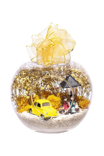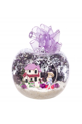 Bu orijinal tasarım yıllarca unutulmayacak eşsiz bir hediye arayanlar için canlı bitkiler ve ahşap mobilyalarla hazırlanmıştır. El emeği ile üretilen şeyler her zaman özeldir. Minyatür bahçeniz, sevdiklerinizin gününü güzelleştirmek için özenle seçilen bitkiler ve tek tek elde hazırlanan aksesuarlarla tamamlanır. Minyatür bahçe, 14 x 14 cm. boyutunda benzer formdaki siyah cam ya da siyah seramik kaplarda Haworthia – Sukulent bitkisi ile hazırlanır. (Sukulent cinsi stok durumuna göre değişiklik gösterebilir.) Bahçede el yapımı ahşap sandalye, ahşap masa ve üzerinde minyatür kitap ve kalemlik bulunmaktadır. Zeminde ise minyatür mantar ve çakıl taşları yer alır. Zarif hediyeniz, "Kişiye Özel" şık bir bahçe tabelası ile tamamlanmaktadır. Büyük bölümü tek tek elde hazırlanan minyatür aksesuarların tasarımlarında değişiklikler ya da milimetrik ölçü farklılıkları bulunabilir. Bakım: Minyatür bitki canlıdır. Bol gün ışığı alan iç mekanlar için uygundur. Minyatür bahçenin zemininde canlı ya da şoklanmış yosun kullanılır. Yosunlar zamanla renk ve dokularını kaybedebilir.