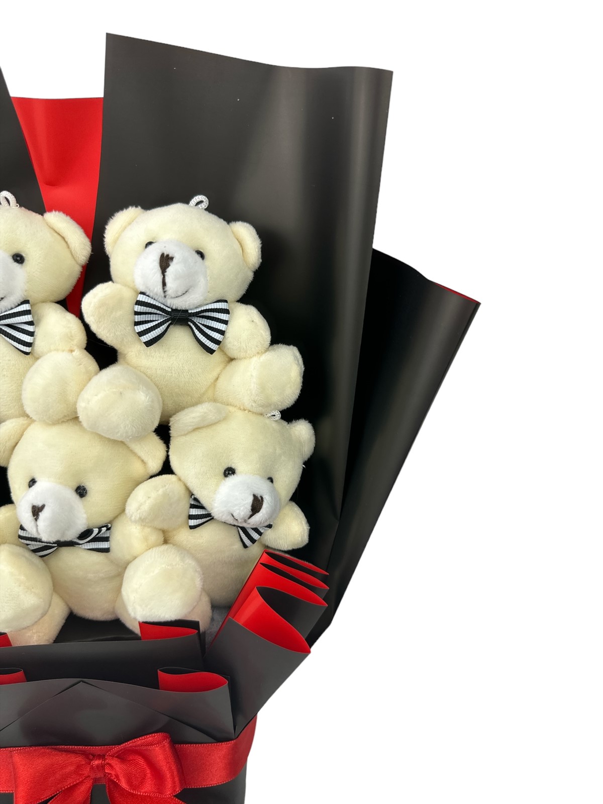 Sıradan çiçeklerden sıyrılan, duygusal anların en tatlı ifadesi: Peluş Ayı Buketleri. Sevgi, neşe ve şefkatin özü, peluş ayıların bir araya getirilerek oluşturduğu bu eşsiz hediyede buluşuyor. Her bir ayıcık, sevgiyle seçilmiş ve özenle yerleştirilmiş, çeşitliliği ve renkleriyle göz kamaştırıyor. Büyüklerinden küçüklerine, her bir ayı bir anlam taşıyor ve buketin her köşesinde sevgi dolu bir hikaye anlatıyor. Her bir detay, özel bir el işçiliğiyle şekillendirilmiş. Renk uyumları, zerafet ve estetiği bir araya getirirken, dekoratif süslemeler buketin her bir köşesine ayrı bir parlaklık katıyor. Ve unutulmamalı ki, üzerinde yer alan özel notlar ve mesajlarla, bu peluş ayı buketleri birer kişisel anlam kazanıyor. Romantik ilişkilerin en tatlı ifadesi olan peluş ayı buketleri, sevgililer gününde, doğum günlerinde ya da sadece sevdiklerinizi mutlu etmek için tercih edilebilir. Her bir peluş ayı, kalıcı bir hatıra olarak, sevginizi ve neşenizi yıllarca taşıyacak. Sevgi dolu bir hediye arayışındaysanız, peluş ayı buketleriyle duygularınızı yumuşak bir kucakla ifade edin. Sevgi, neşe ve şefkatin en güzel simgesiyle, özel anların tadını çıkarın. Buketimiz 5 Adet Ayıcıktan Oluşmaktadır