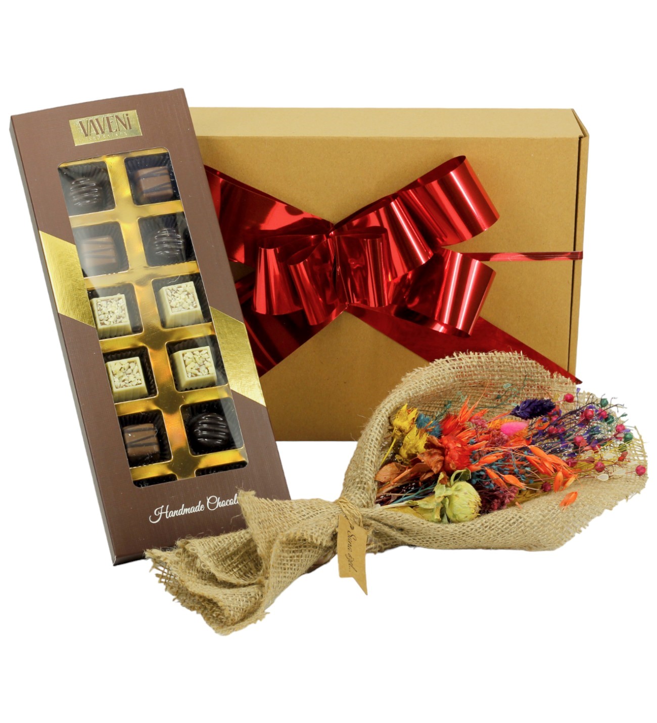 Kuru Çiçek Buketi Ve Çikolata