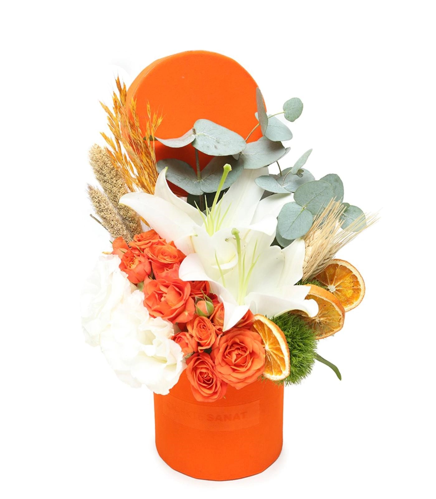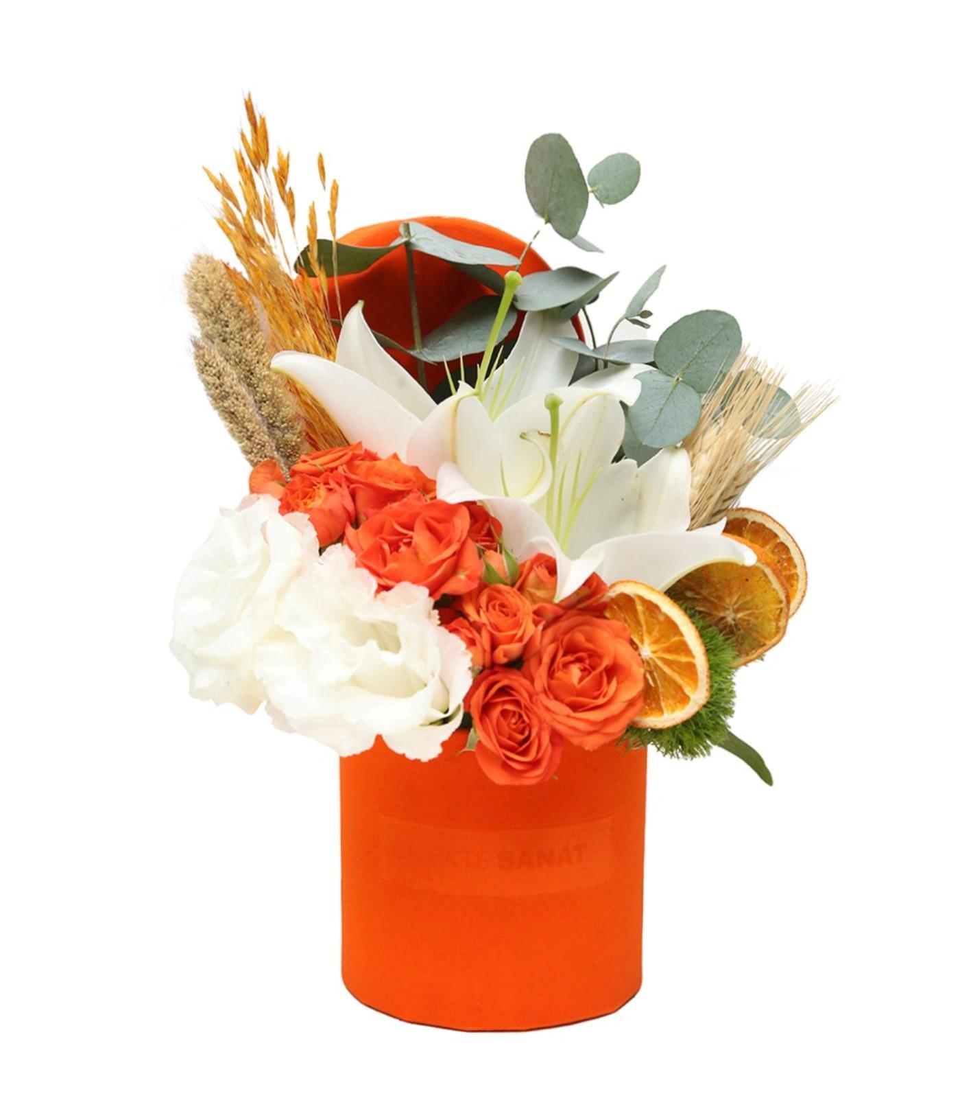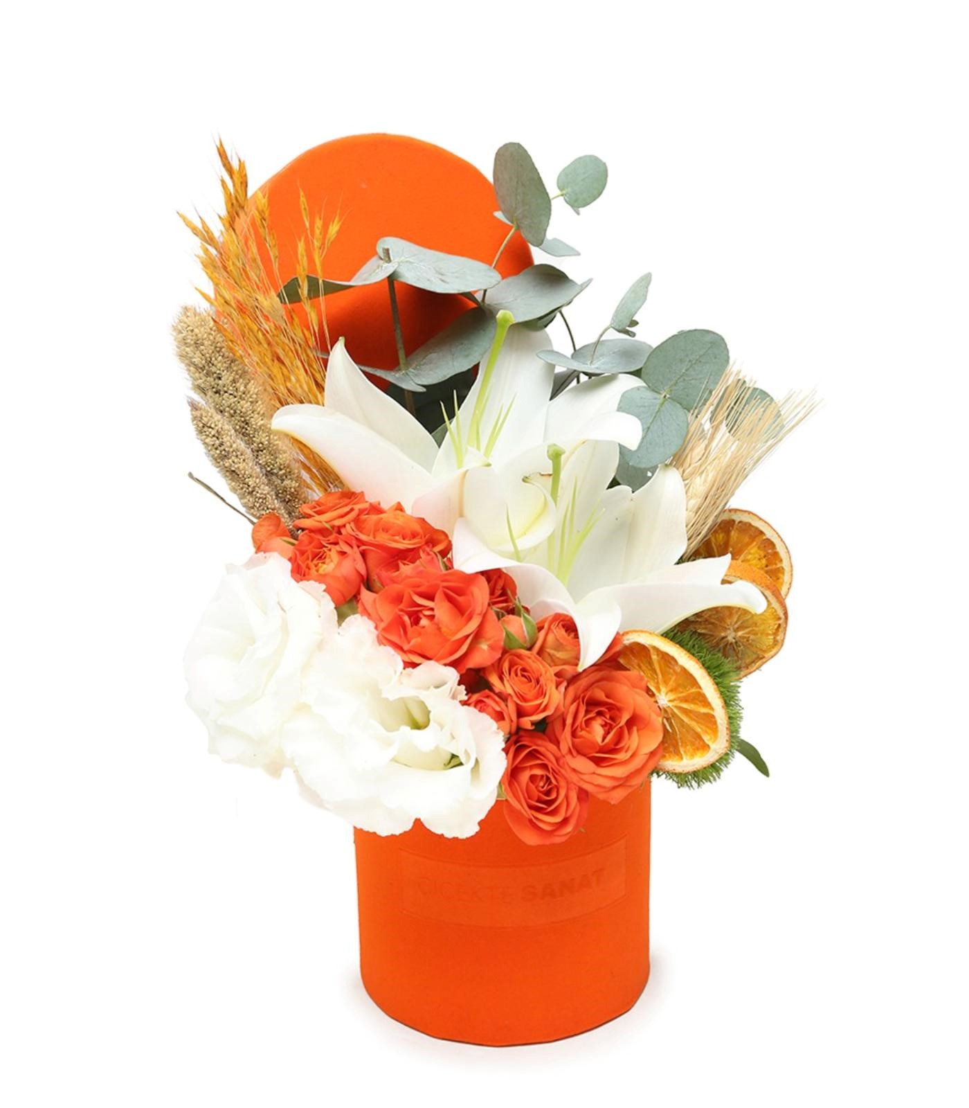 Ürünümüzün içerisinde Turuncu Çardak Güller, Beyaz Lilyum mevcut olup floral designers ekibimizin sizler için yakınlarınıza harika bir hediye fırsatı sunmaktadır.