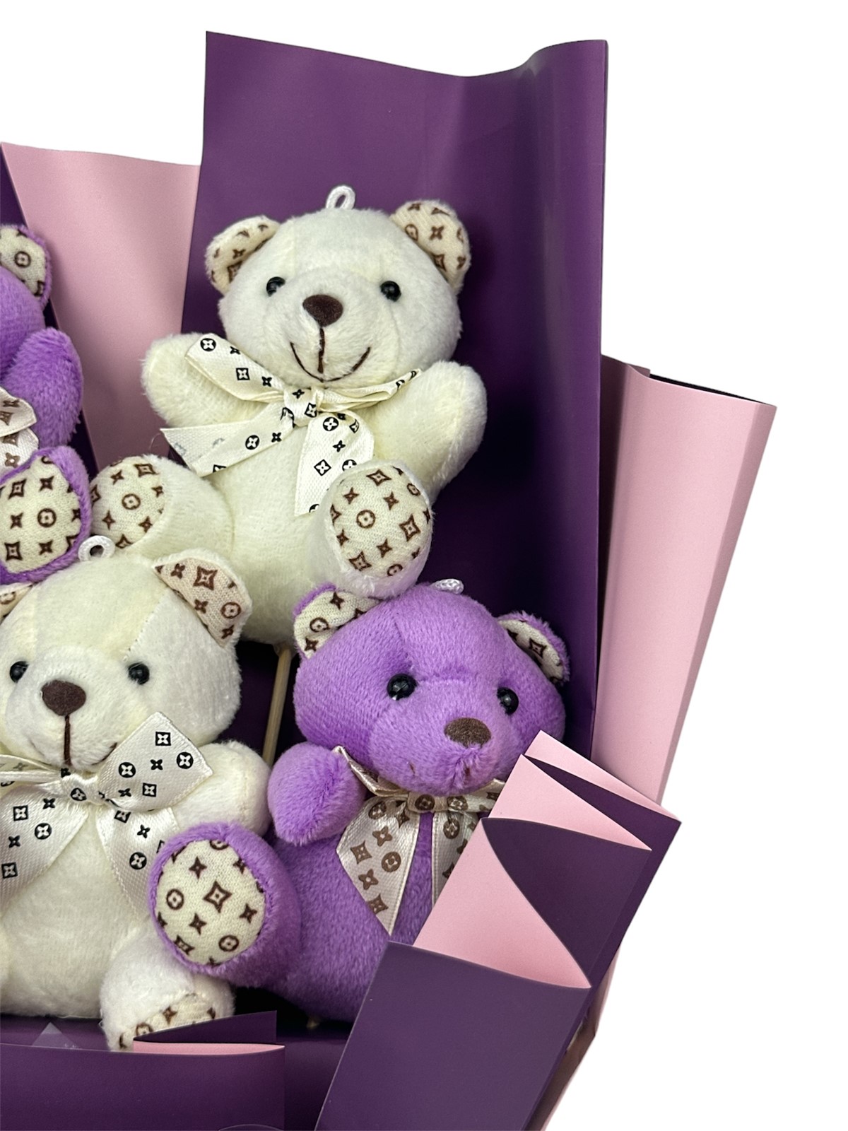 Sıradan çiçeklerden sıyrılan, duygusal anların en tatlı ifadesi: Peluş Ayı Buketleri. Sevgi, neşe ve şefkatin özü, peluş ayıların bir araya getirilerek oluşturduğu bu eşsiz hediyede buluşuyor. Her bir ayıcık, sevgiyle seçilmiş ve özenle yerleştirilmiş, çeşitliliği ve renkleriyle göz kamaştırıyor. Büyüklerinden küçüklerine, her bir ayı bir anlam taşıyor ve buketin her köşesinde sevgi dolu bir hikaye anlatıyor. Her bir detay, özel bir el işçiliğiyle şekillendirilmiş. Renk uyumları, zerafet ve estetiği bir araya getirirken, dekoratif süslemeler buketin her bir köşesine ayrı bir parlaklık katıyor. Ve unutulmamalı ki, üzerinde yer alan özel notlar ve mesajlarla, bu peluş ayı buketleri birer kişisel anlam kazanıyor. Romantik ilişkilerin en tatlı ifadesi olan peluş ayı buketleri, sevgililer gününde, doğum günlerinde ya da sadece sevdiklerinizi mutlu etmek için tercih edilebilir. Her bir peluş ayı, kalıcı bir hatıra olarak, sevginizi ve neşenizi yıllarca taşıyacak. Sevgi dolu bir hediye arayışındaysanız, peluş ayı buketleriyle duygularınızı yumuşak bir kucakla ifade edin. Sevgi, neşe ve şefkatin en güzel simgesiyle, özel anların tadını çıkarın. Buketimiz 5 Adet Ayıcıktan Oluşmaktadır