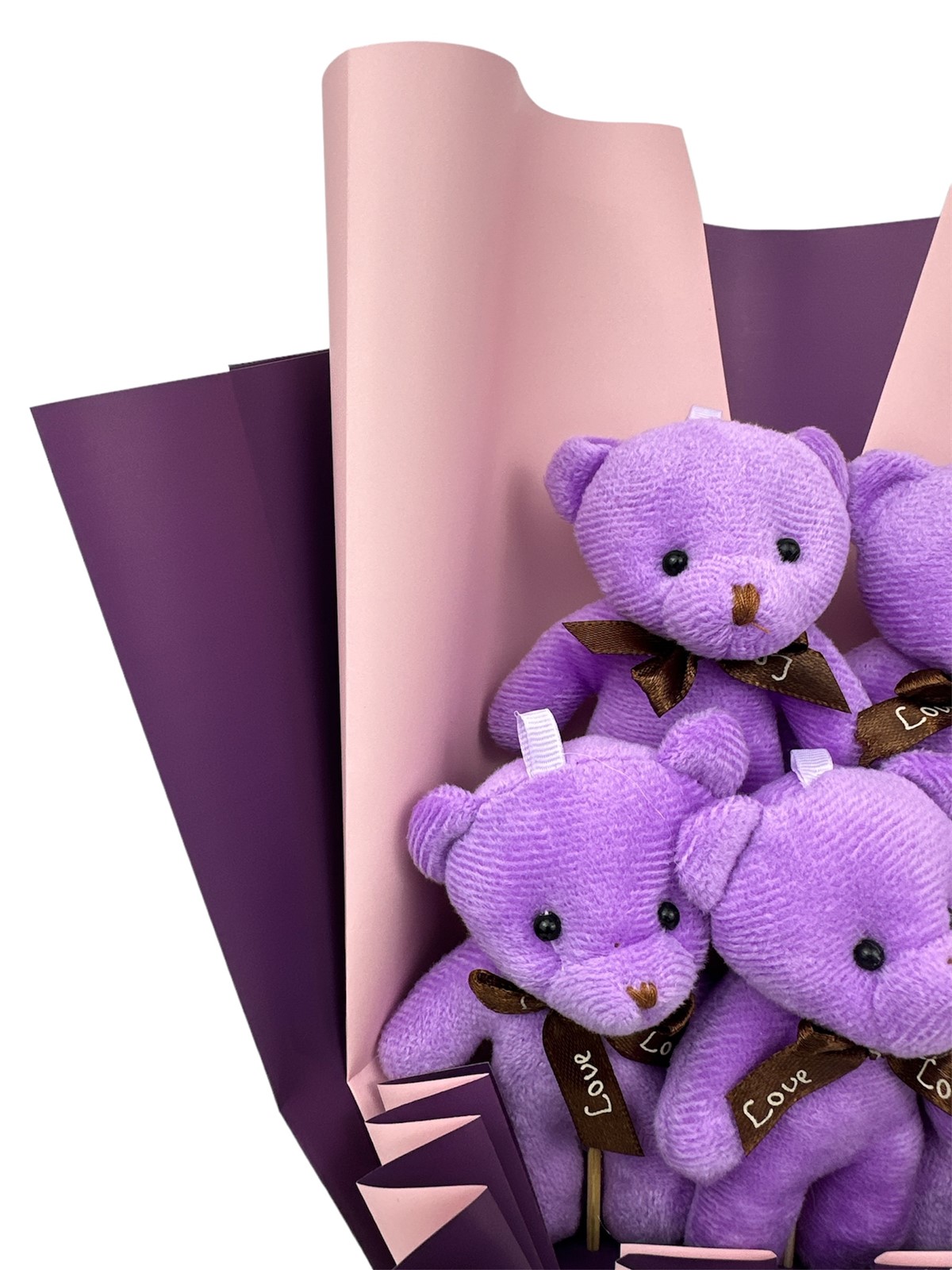 MOR TEMALI SEVİMLİ AYICIK BUKETİ