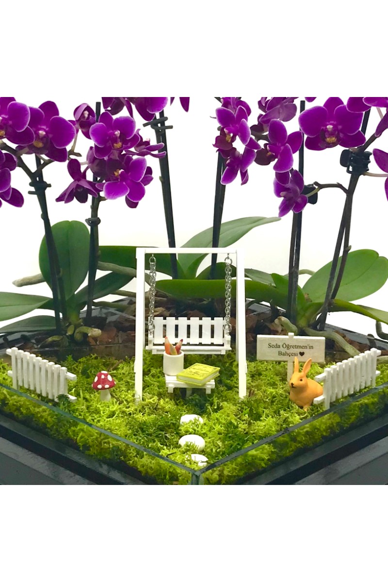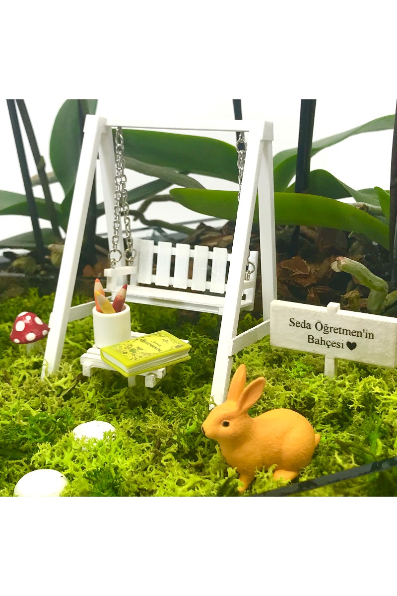 Aksesuarlar : El yapımı ahşap minyatür salıncak ve sehpa, sehpa üzerinde el yapımı minyatür kalemlik ve el yapımı minyatür kitap “Canım Öğretmenim” ya da siparişiniz sırasında tercih edeceğiniz minyatür kitaplarımızdan biri, minyatür tavşan figürü, el yapımı ahşap bahçe çitleri, minyatür kırmızı mantar, minyatür taş figürleri ve isme özel hazırlanan ahşap bahçe tabelası (Tüm aksesuarlar fiyata dahildir)