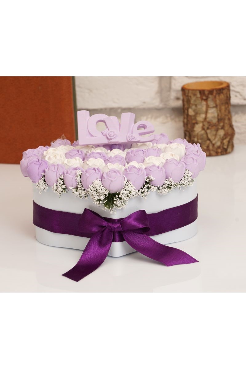 Özel Tasarım Kalp Saksıda Mor Kokulu Taş Çiçek Aranjmanı