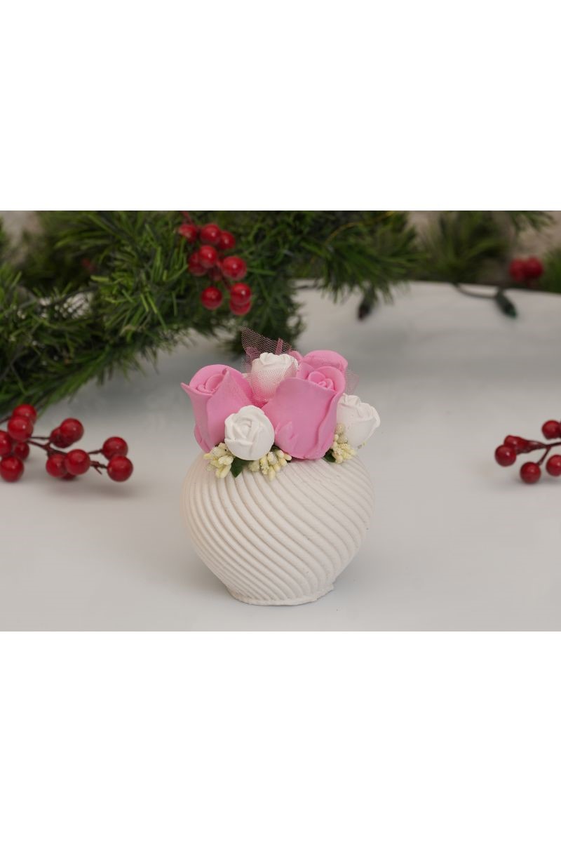 Özel tasarım taş döküm burgu saksıda pembe gonca güller kokulu taş çiçek aranjmanı