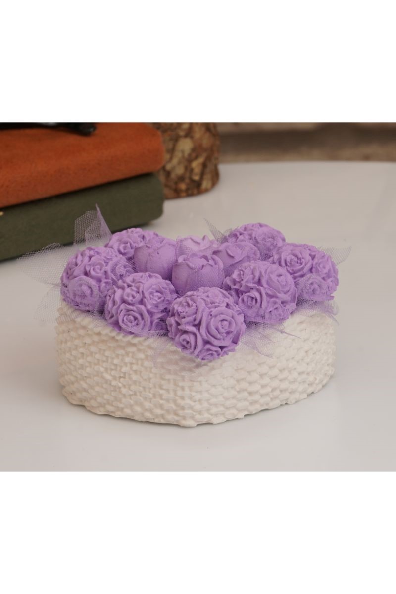 Özel Tasarım Taş Döküm Kalpli Saksıda Mor Top Güller Kokulu Taş Çiçek