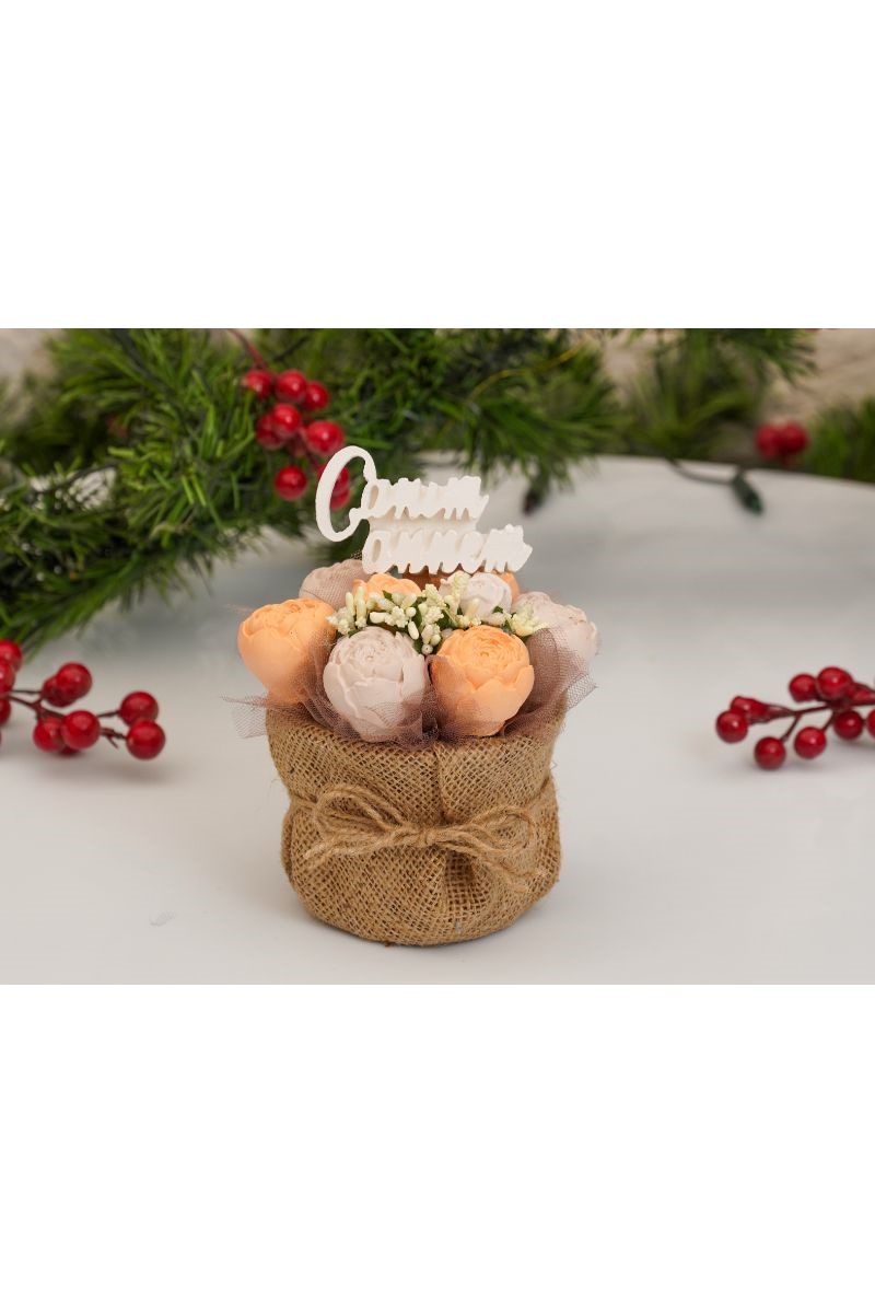 Sizin için özenle hazırlanan bu aranjman dekoratif özel tasarım jüt saksıda tamamı el işçiliği ile üretilmiştir.
