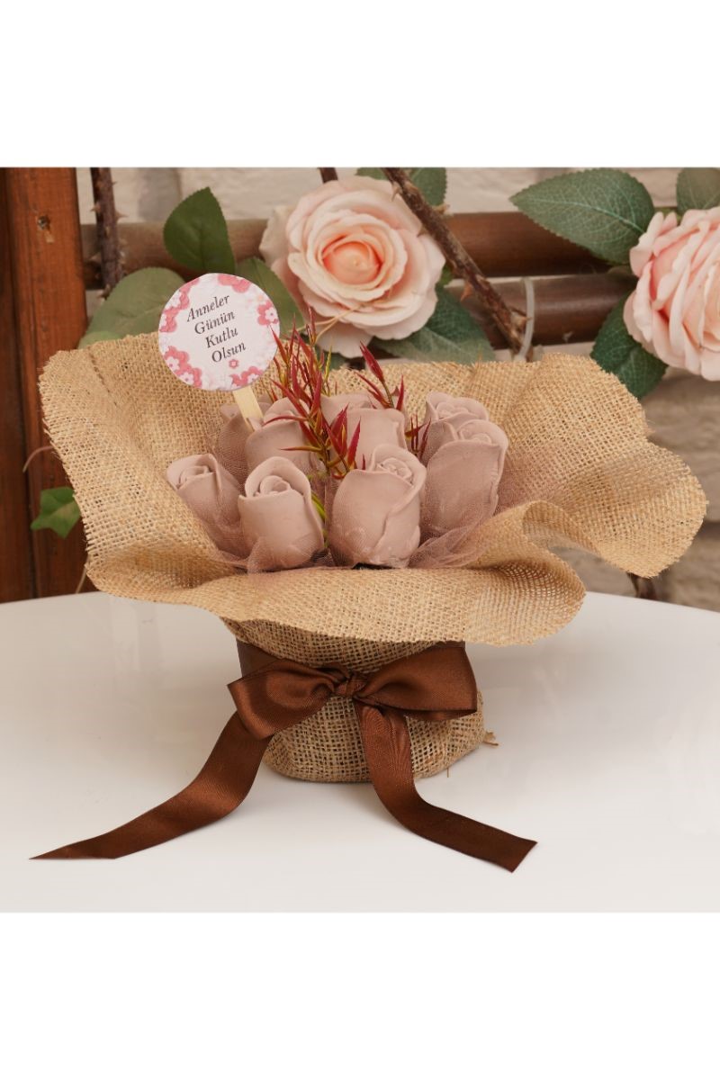 Özel Yapım Jüt Saksıda Vizon Aşk Gonca Güller Kokulu Taş Çiçek Aranjmanı (Anneler Günü)