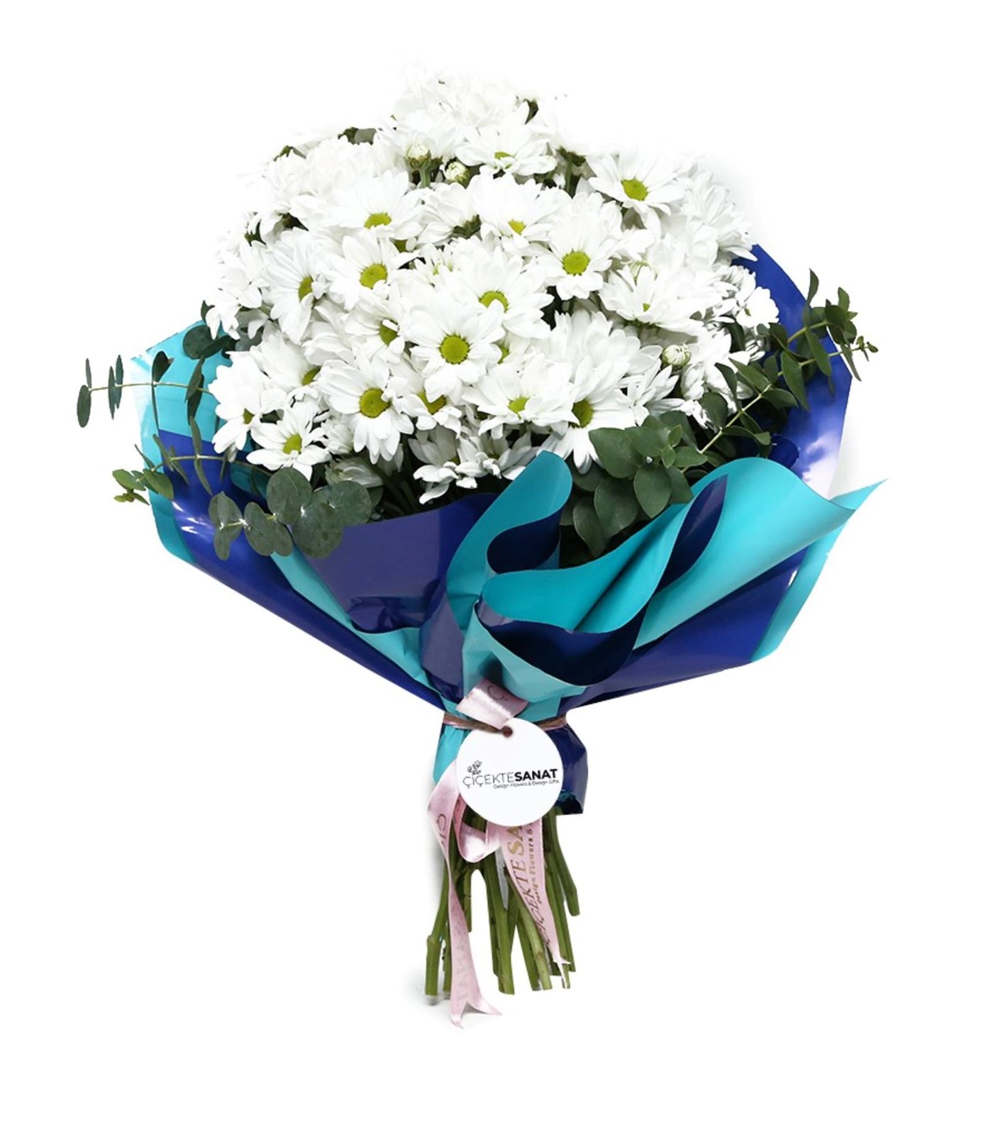 Papatya Buketi, Floral Designers ekibimizin Beyaz Papatyalar ile harika paketlemesiyle tasarlanmıştır