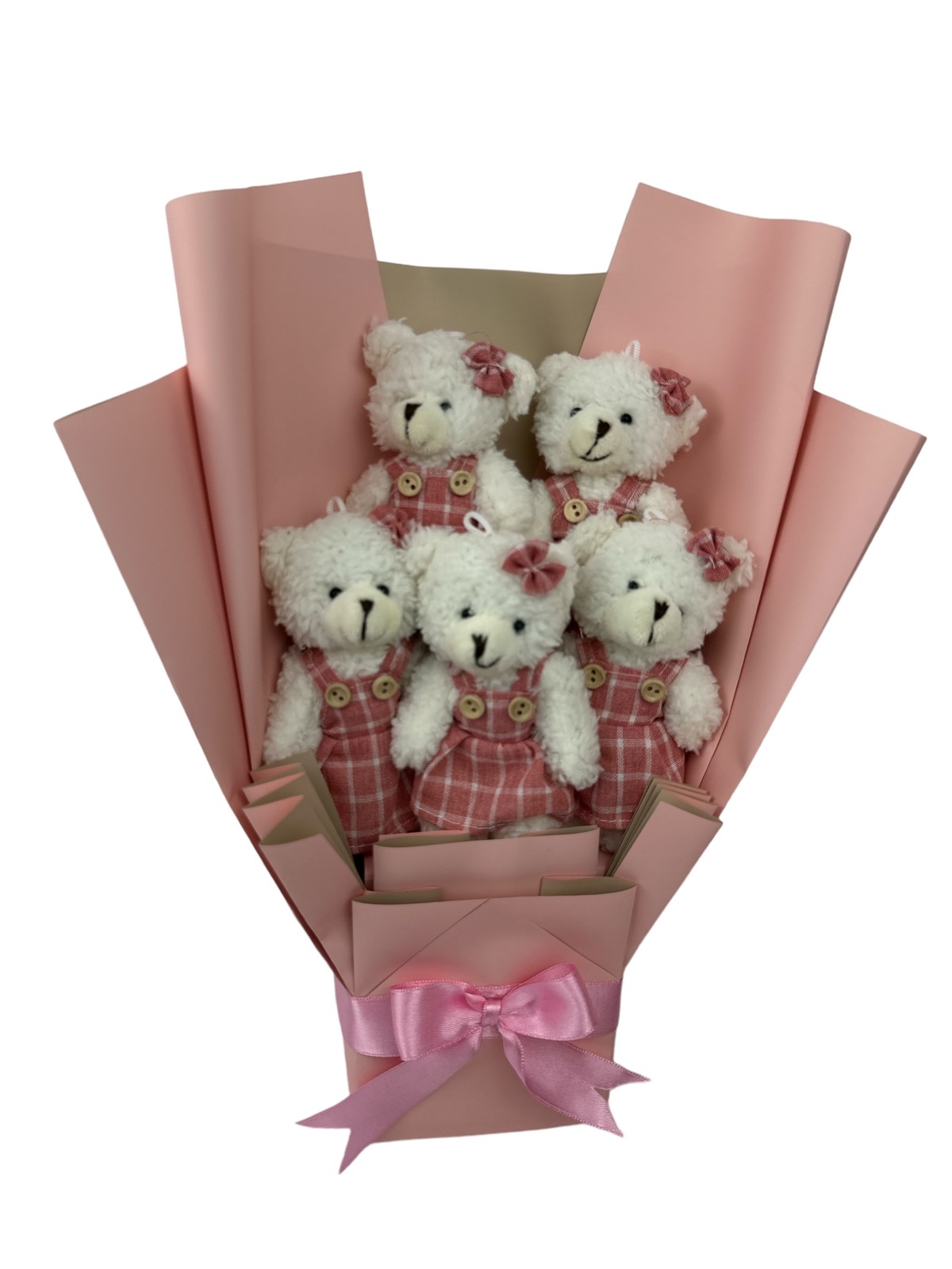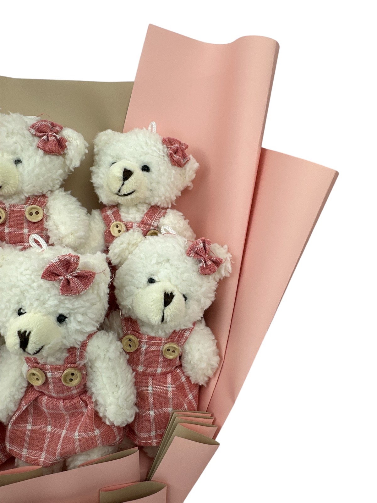 PEMBE EKOSE ELBİSELİ PELUŞ AYICIK BUKETİ