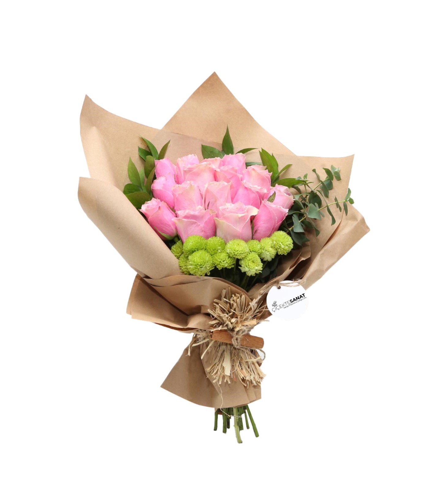 Pink 15 Roses Bouquet ekibimizin Pembe güller ile harika paketlemesiyle tasarlanmıştır