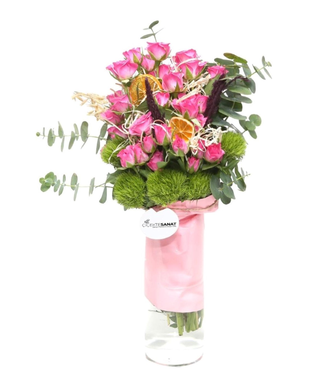 Pink Bubbles Pembe Güller içerisinde, Pembe Çardak Güller , Kuru Portakallar ve Venium Kuru Çiçekler mevcut olup floral designers ekibimizin sizler için O’na anlamlı bir hediye armağan etmeniz için hazırladığı derlemelerdendir.