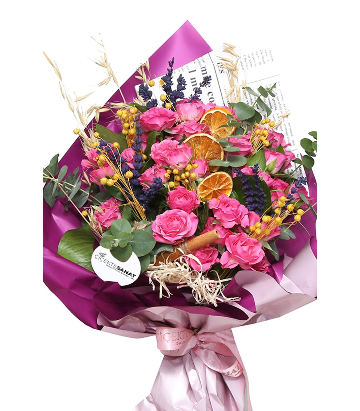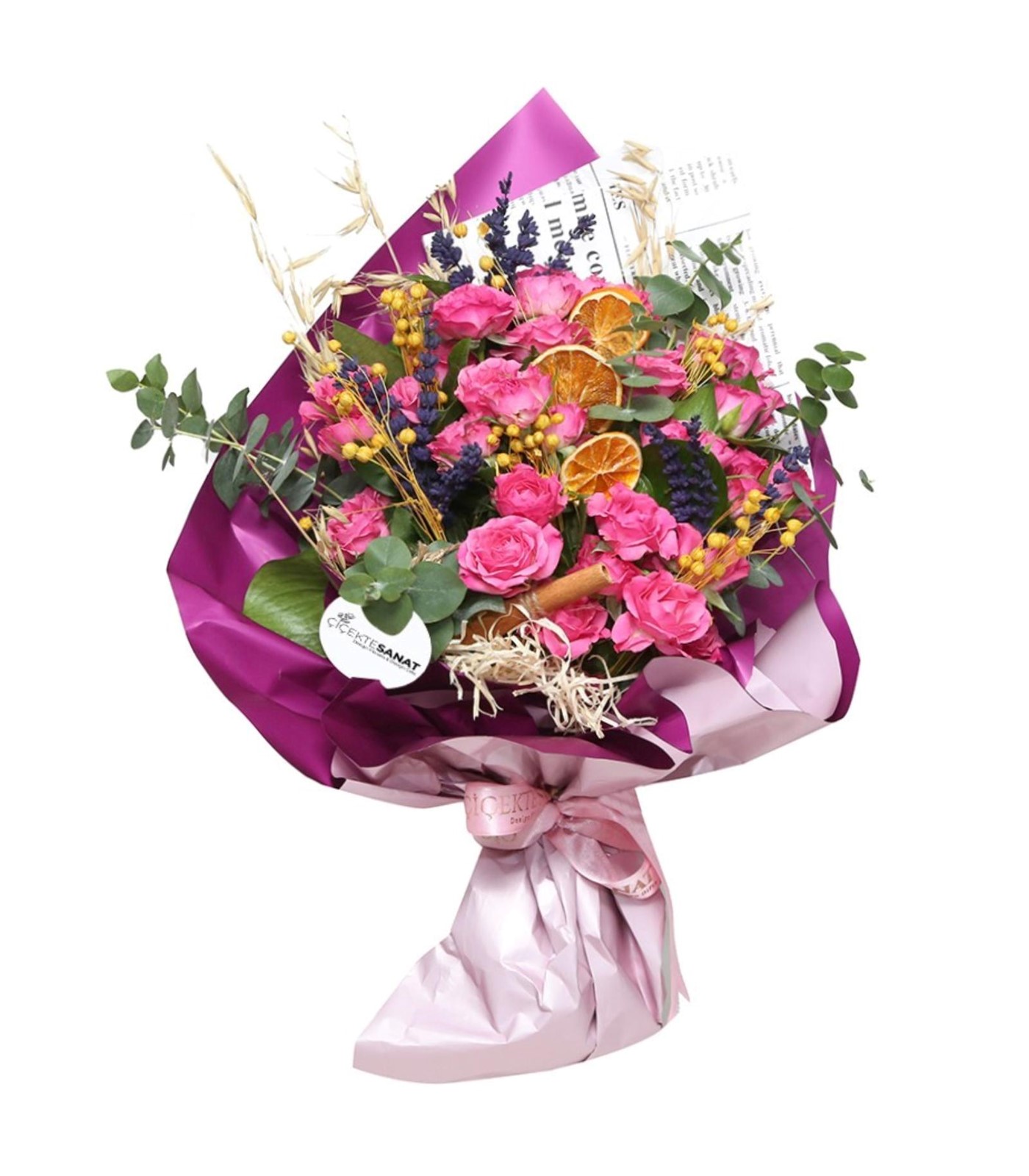 Pink Mirage Gül Buketi Floral Designers ekibimizin harikalar yarattığı çok neşeli ve sade bir düzenlemedir.