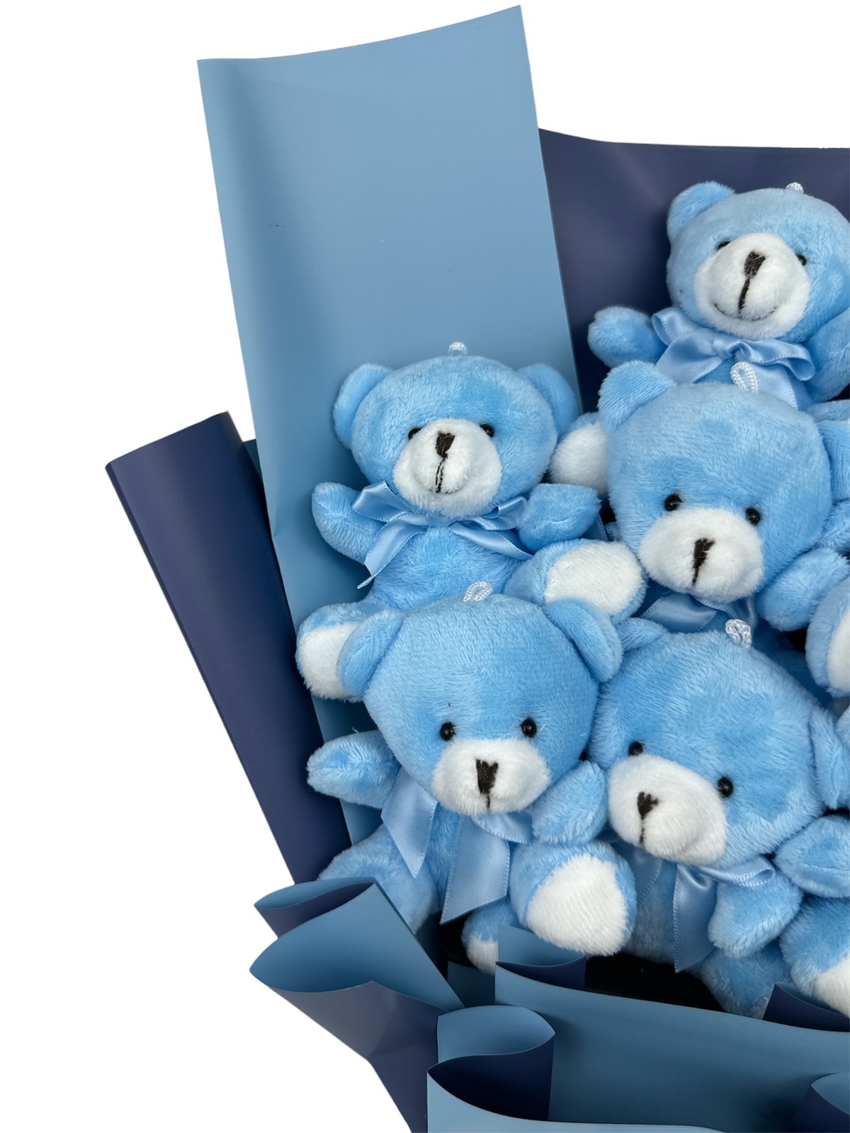 PREMİUM MAVİ TEMALI SEVİMLİ AYICIK BUKETİ