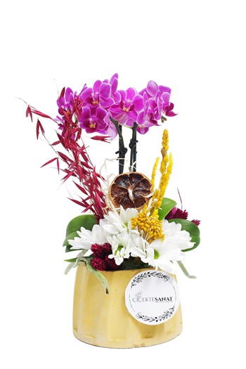 Pretty Smell Elegance Aranjmanı için altlık olarak ithal seramik kullanılmıştır. Direk güneş ışığı aldığında çiçeklerde bayılmalar meydana gelebilir, oda sıcaklığında ofis , ev , işyerleri için çok uygundur